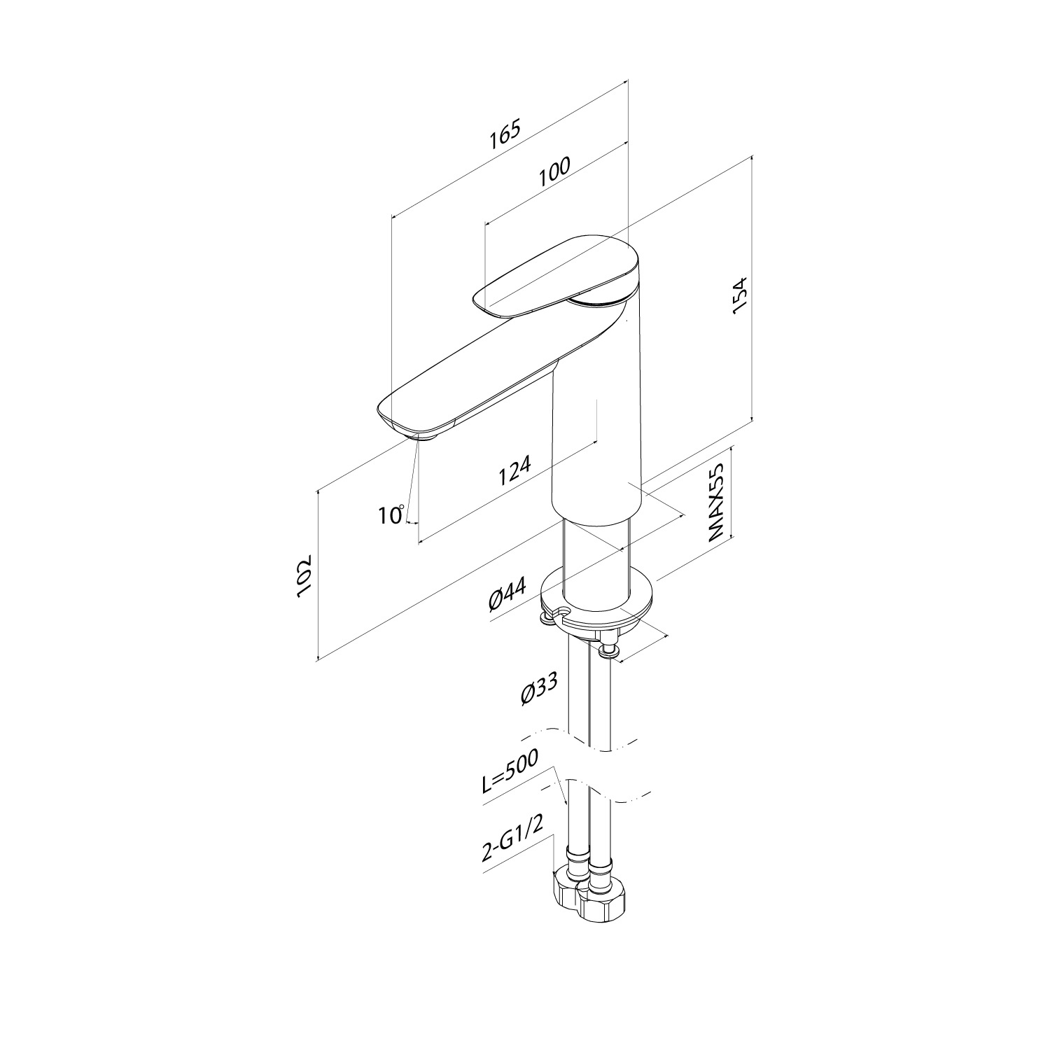 Удлинённая гибкая подводка (L = 500 мм) выполнена из материала PEX — на нём не образуется бактериальная плёнка.