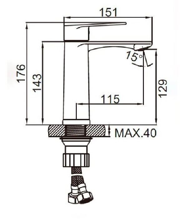 Гибкая подводка в комплекте обеспечивает удобство установки.