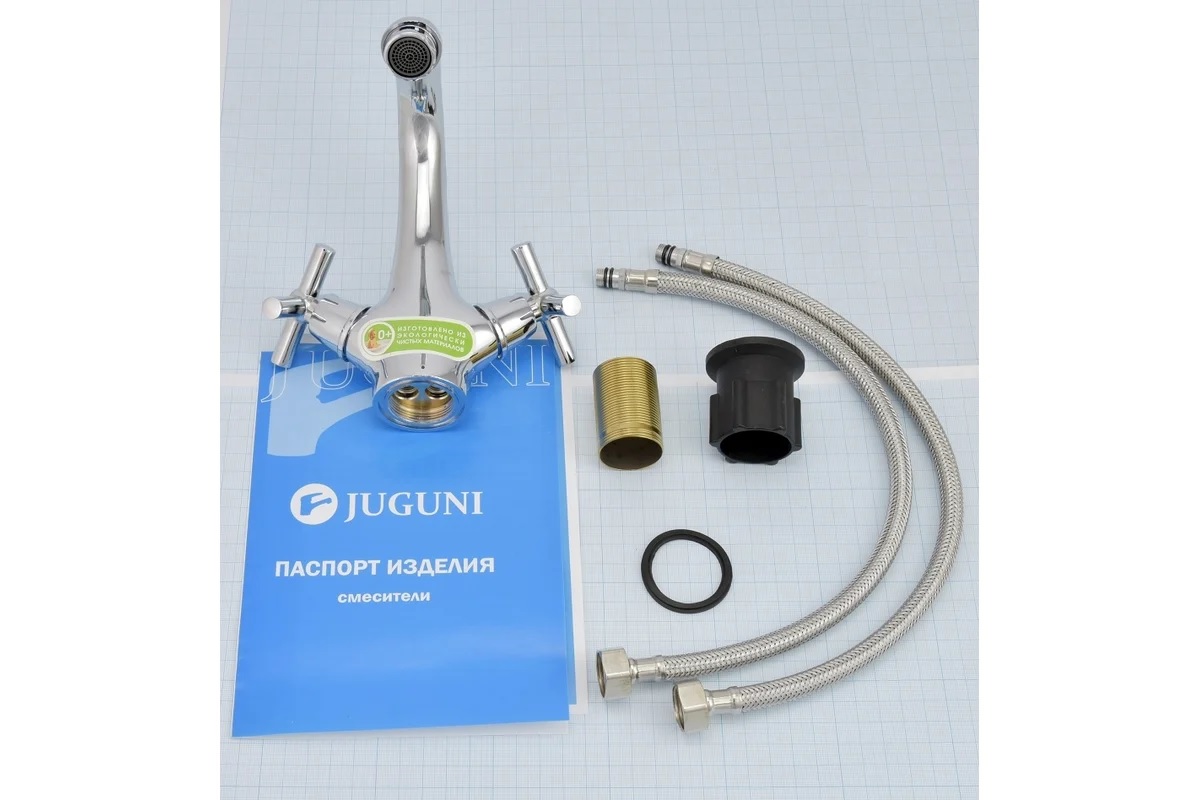 Смеситель для умывальника JUGUNI Andromeda двуручный литой излив, гайка 0402.722