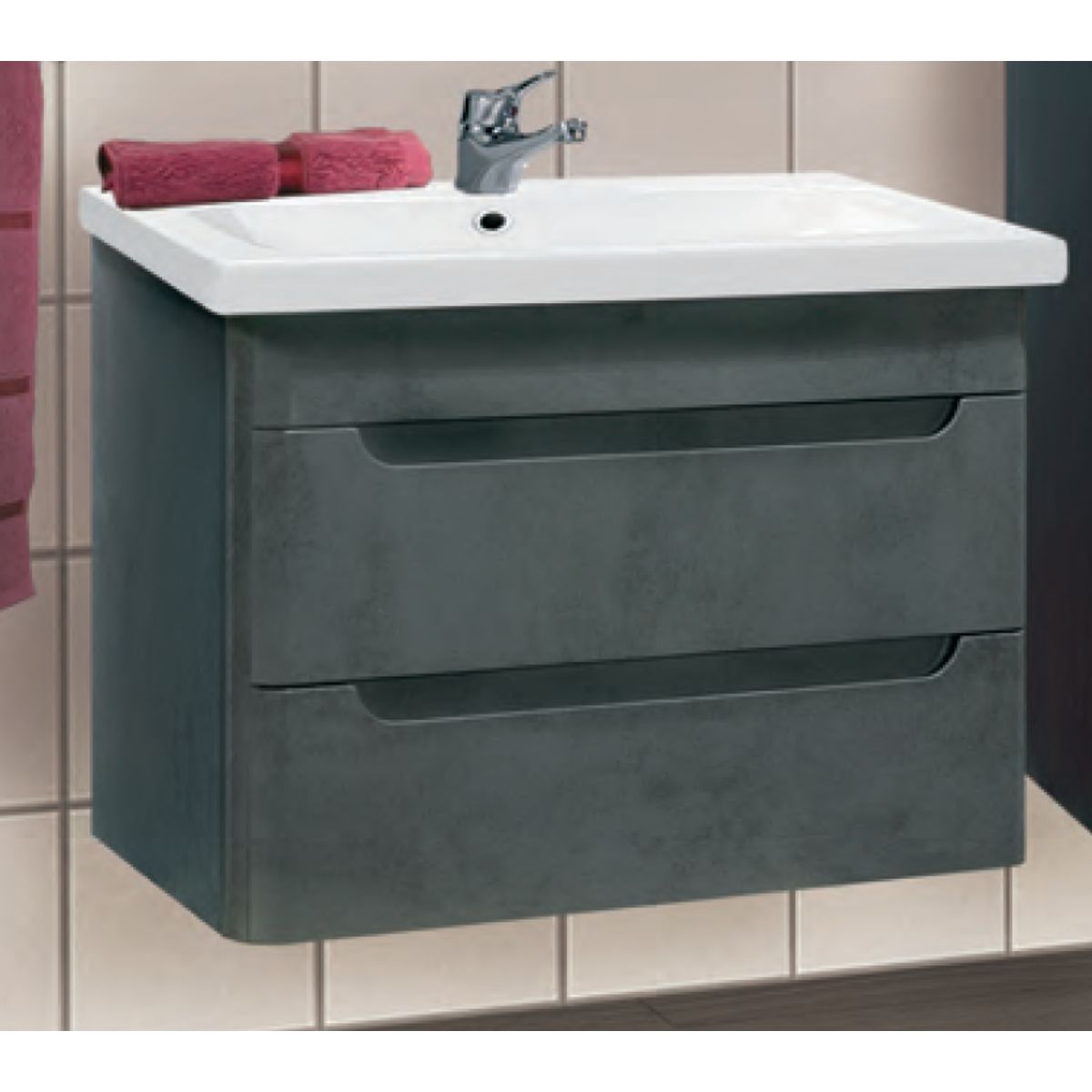 Тумба VAKO "Техно 60" бетон темный подвесная с умывальником "Сомо 60" арт.18668