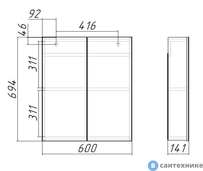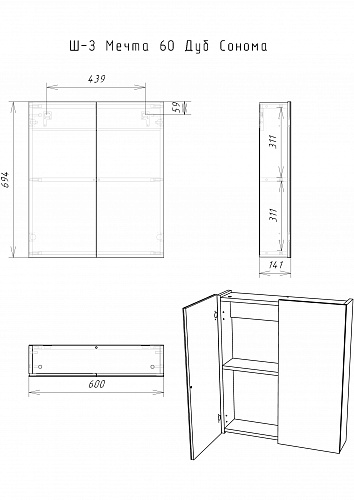 Зеркало-шкаф АЙСБЕРГ "Мечта-60" Дуб сонома DM2319HZ