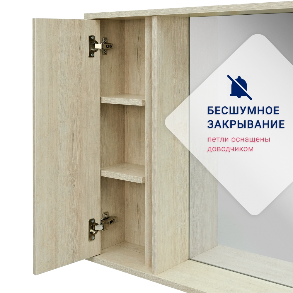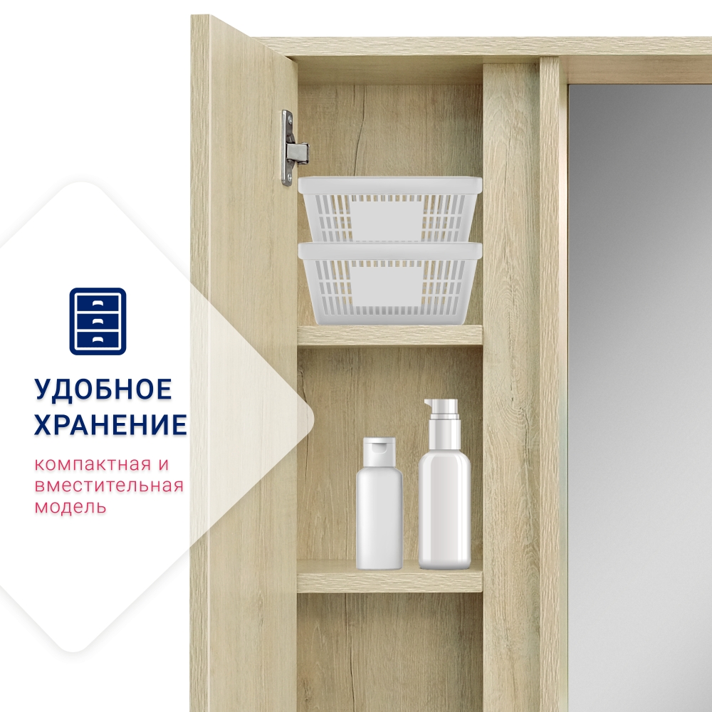 Зеркало со шкафом Мальта 70, пикар, левое DORATIZ 2711.154 - стильный и вместительный шкафчик с зеркалом, исполненный в модном цвете пикар. За фасадом из влагостойкого ЛДСП размещаются 2 деревянные полочки для удобной организации хранения косметики и аксессуаров. Корпус изготовлен из влагостойкого ЛДСП, специально для эксплуатации в помещениях с повышенной влажностью. Дверца снабжена доводчиком, что обеспечивает удобное и плавное закрывание. Обработка зеркального полотна предназначена для использования во влажных помещениях. Мебель TM Doratiz изготавливается в Российской Федерации в соответствии с ГОСТом 16371-2014. Все материалы, используемые в производстве, соответствуют санитарно-эпидемиологическим стандартам, что подтверждается соответствующими сертификатами. Поставляется в собранном виде и готово к установке. В нашем магазине Вы можете найти другие модели мебели для ванны, товары для ванной комнаты, интерьерные зеркала, раковины, сантехнику.