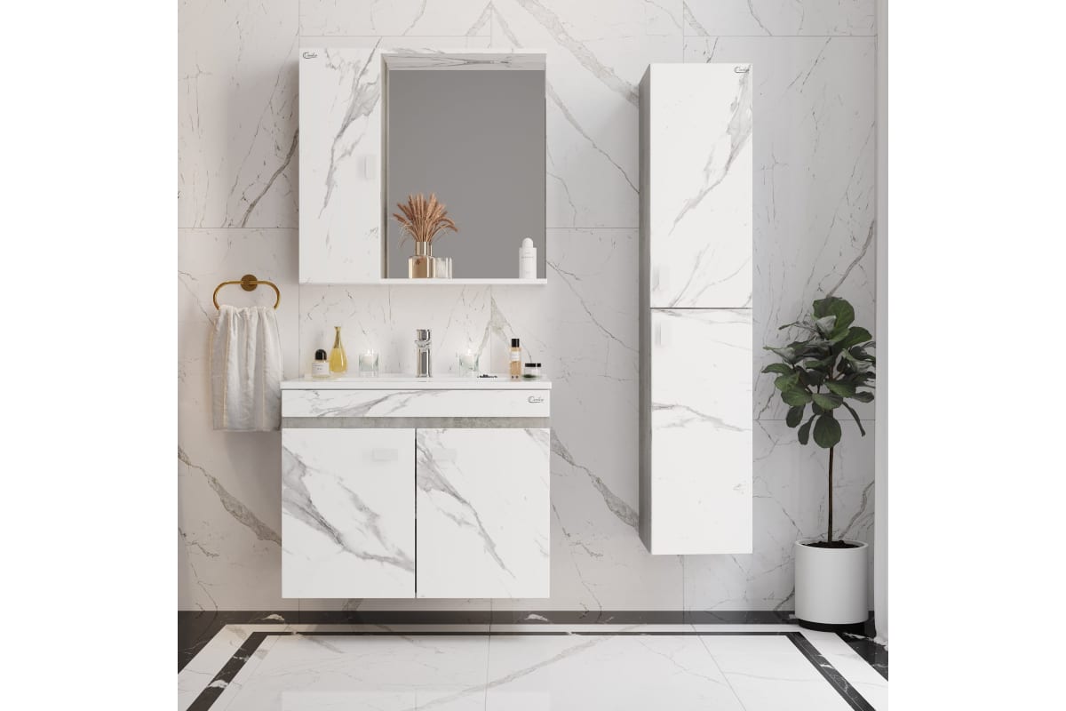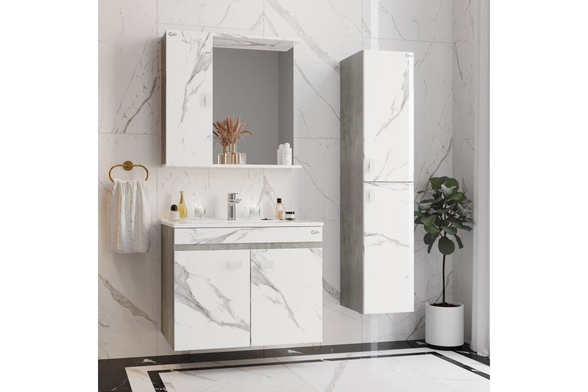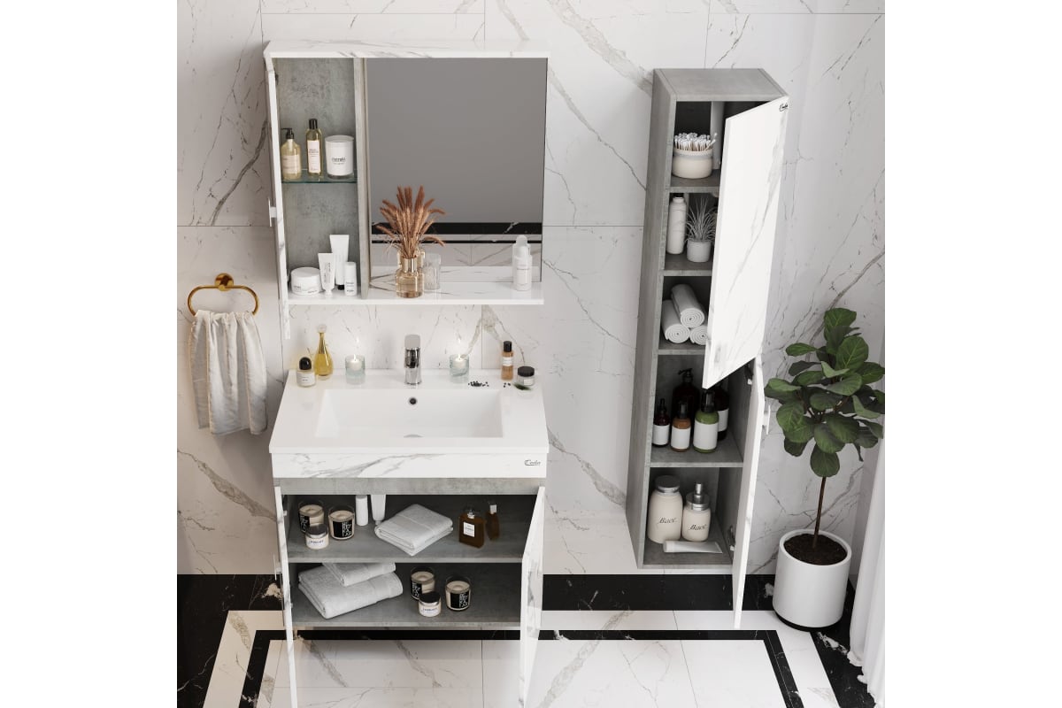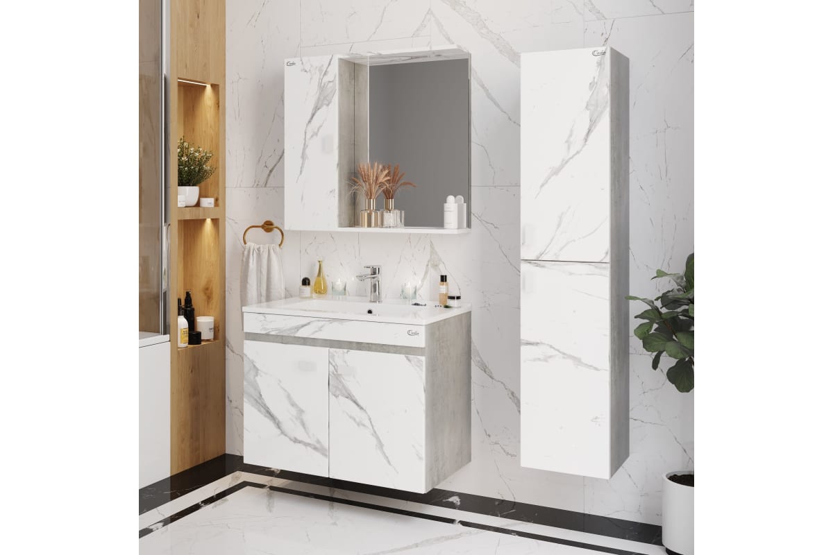 Зеркальный шкаф Onika МАРБЛ 75.00 мрамор/камень бетонный У 207524 станет стильным и функциональным элементом пространства современной ванной комнаты. Спроектированный дизайнерами в минималистичном облике, зеркальный шкаф отражает самые актуальные расцветки сезона - бетон и мрамор.