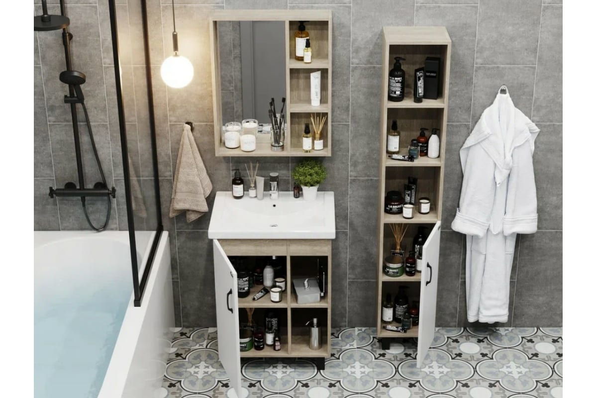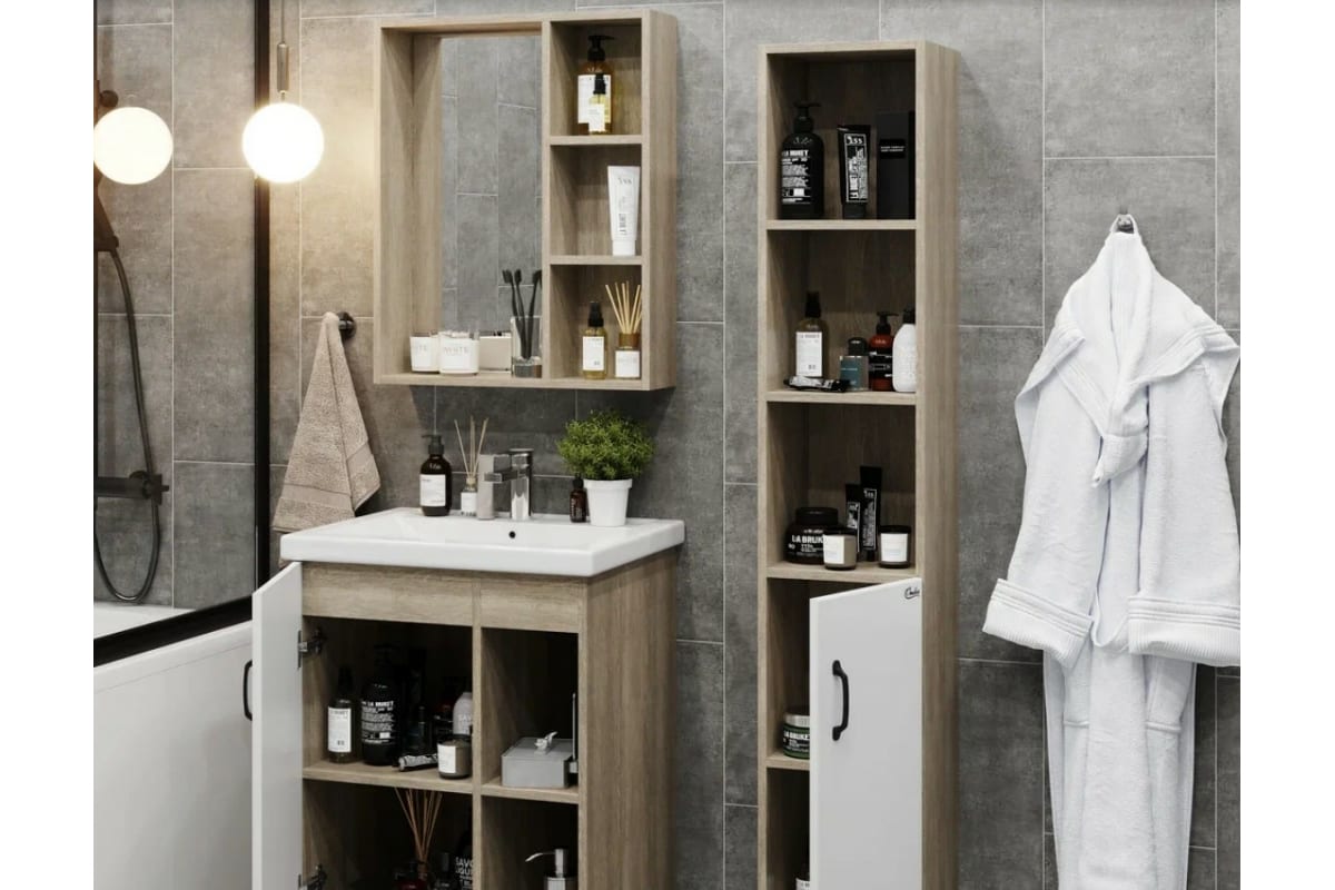 Зеркальный шкаф Onika ТИМБЕР 60.00У дуб сонома 206070 представлен в современном стиле, отлично впишется в любой интерьер ванной комнаты.