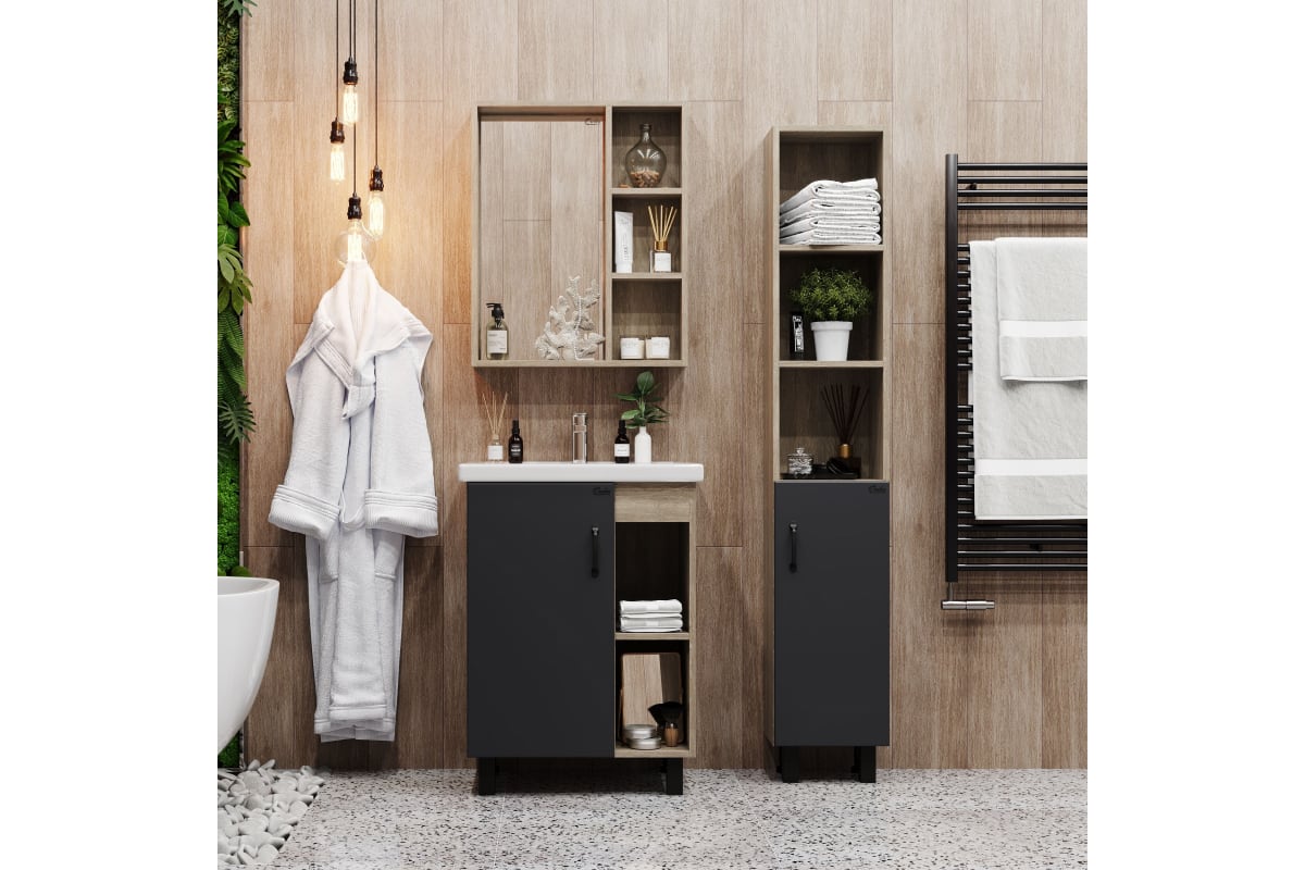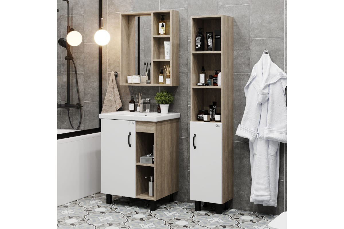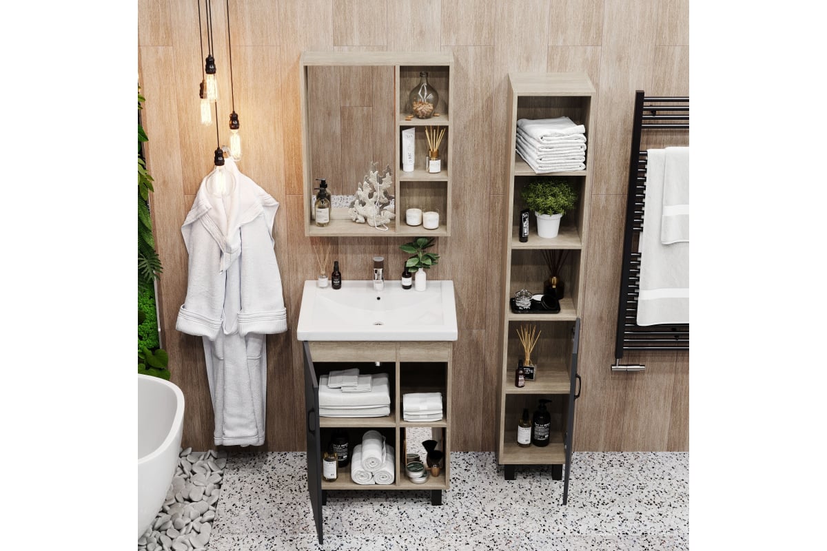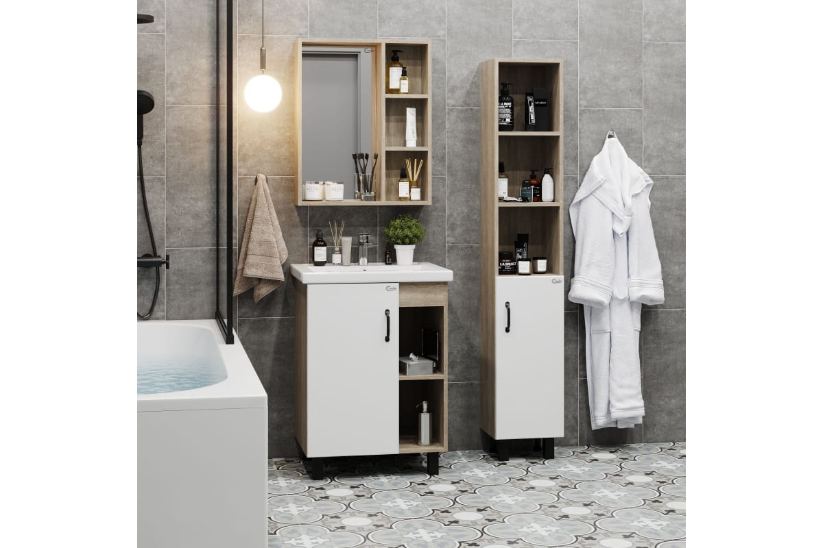 Зеркальный шкаф Onika ТИМБЕР 70 отражает современные тенденции в дизайне мебели для ванных комнат: минимализм с простыми и понятными формами, цвета дуба с роскошной текстурой, отсутствие лишних деталей.