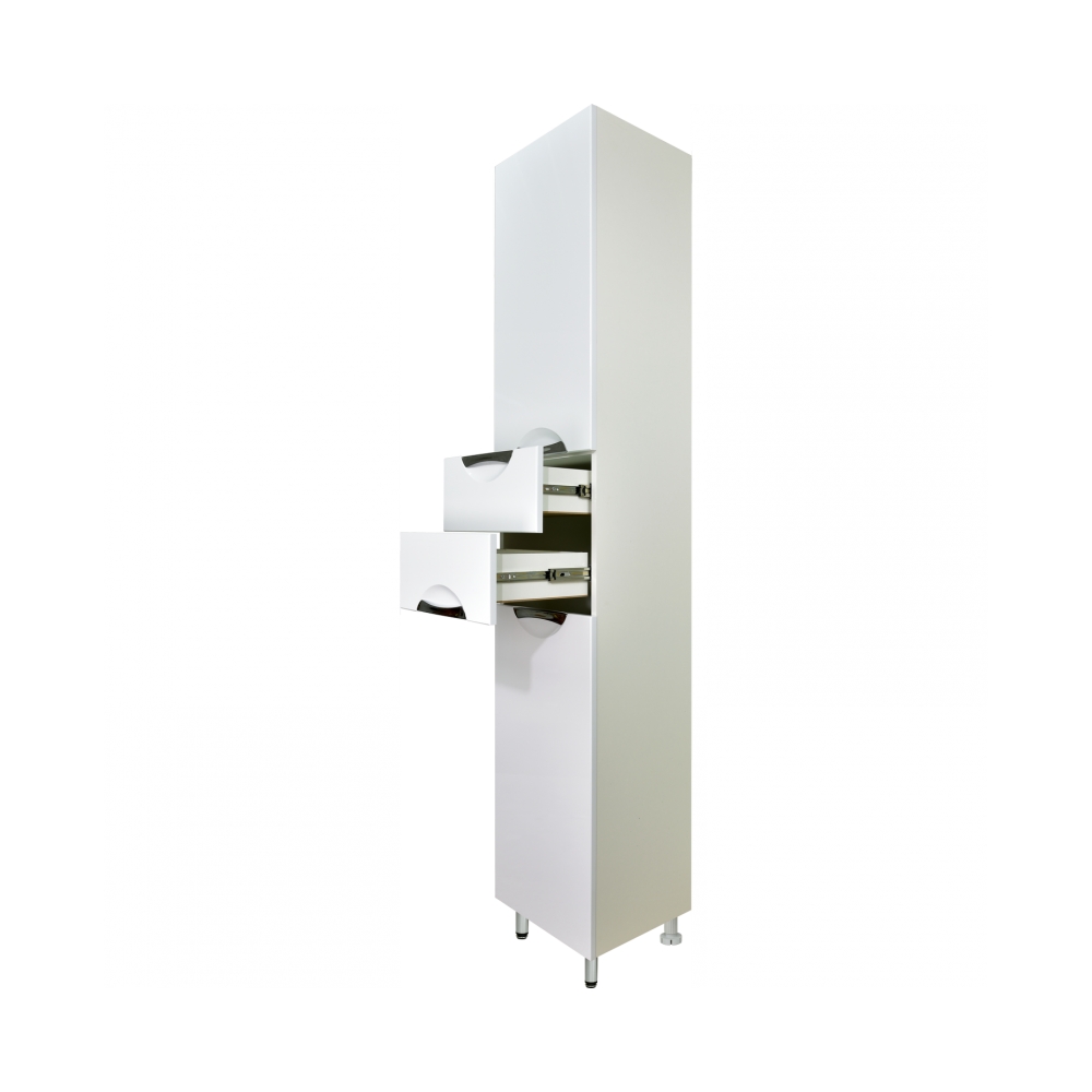 Пенал Афина 35 2712.291, белый, левый, с 2 ящиками - это рациональное решение по-максимуму использовать пространство в ванной комнате не в ширину, а в высоту. Он обладает весьма демократичной ценой и идеальными габаритами.
