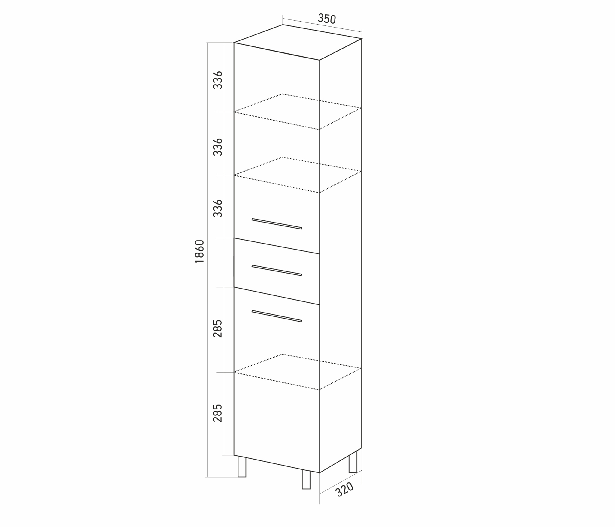 Пенал MIXLINE "ДИАМАНТ-35" левый 350х1760х320 мм (ПВХ)