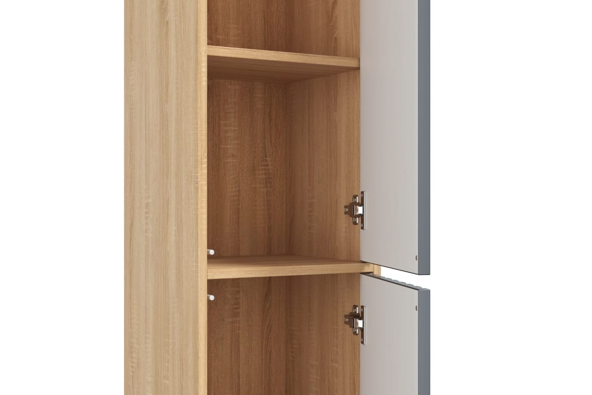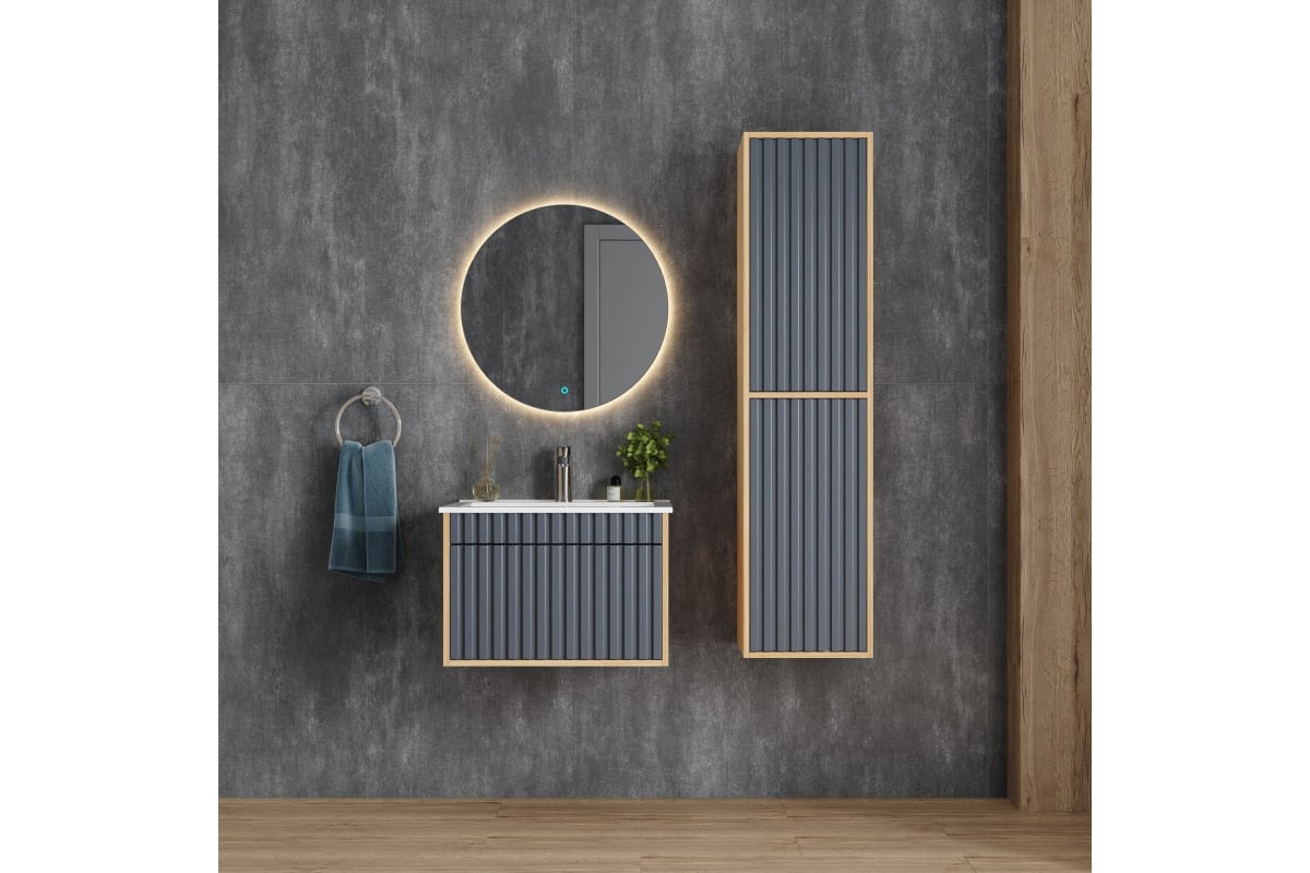Рифленый серый матовый фасад с покрытием SoftTouch и корпус цвета дуба с роскошной текстурой подчеркнет изысканный вкус владельца и станет центральным элементом декора.