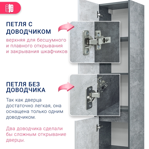 Пеналы коллекции Крит функциональны за счет вместительных мест хранения, закрытых за фасадами. Позволяют обустроить ванную комнату без значительных затрат, но при этом сохраняется удобство и практичность в использовании.