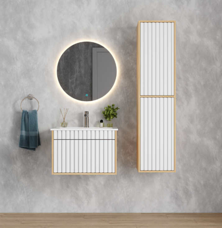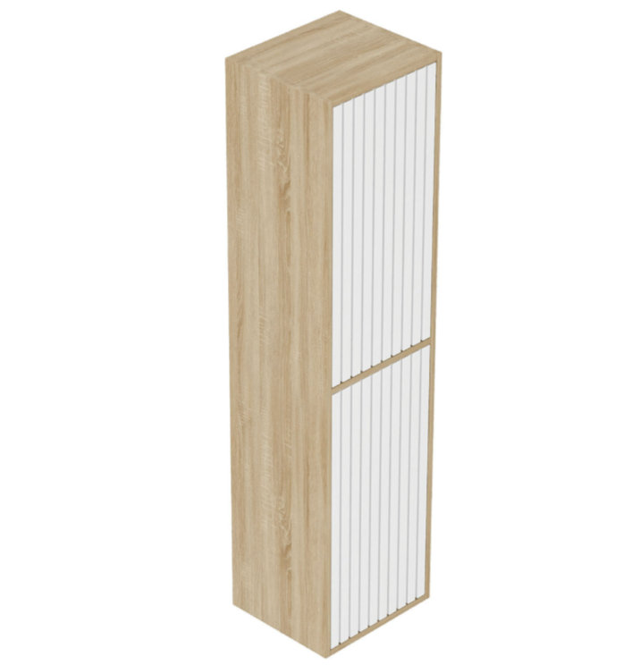 Рифленый белый матовый фасад с покрытием SoftTouch и корпус цвета дуба с роскошной текстурой подчеркнет изысканный вкус владельца и станет центральным элементом декора.