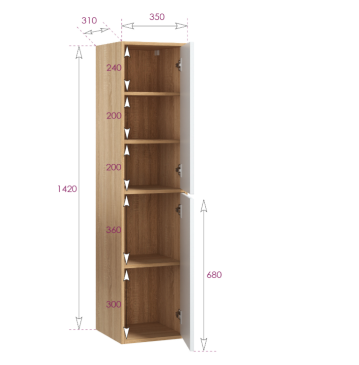 Пенал Onika Дайлер 35 подвесной белый/дуб сонома, универсальный