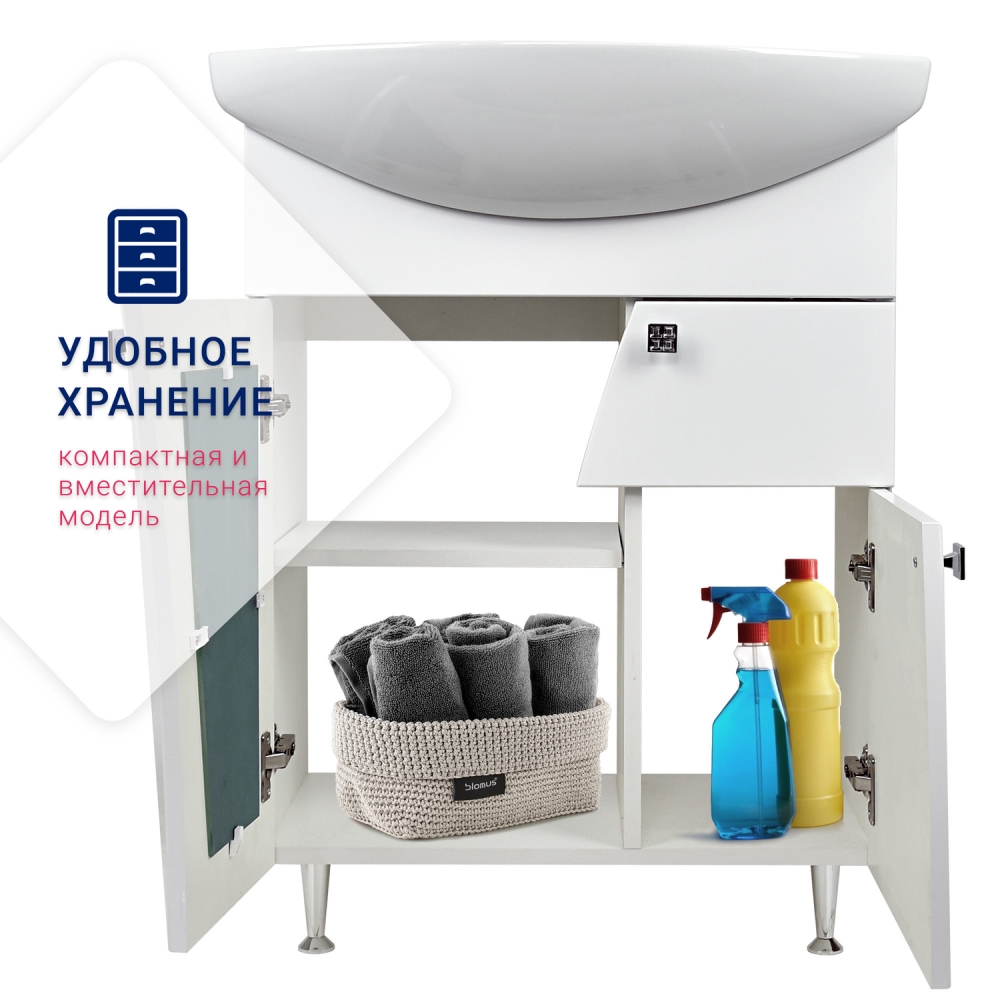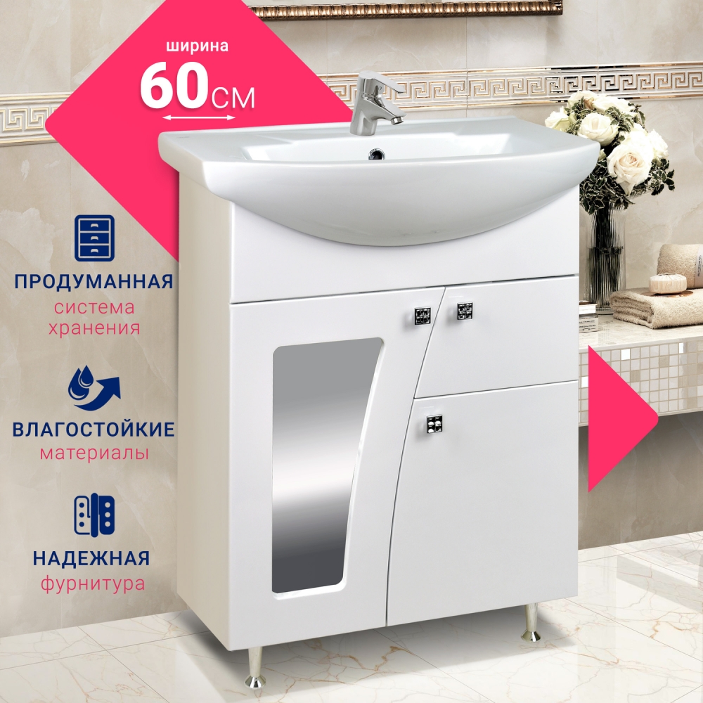 Для комплектации тумбы идеально подойдет умывальник Уют 60, Амур 60.