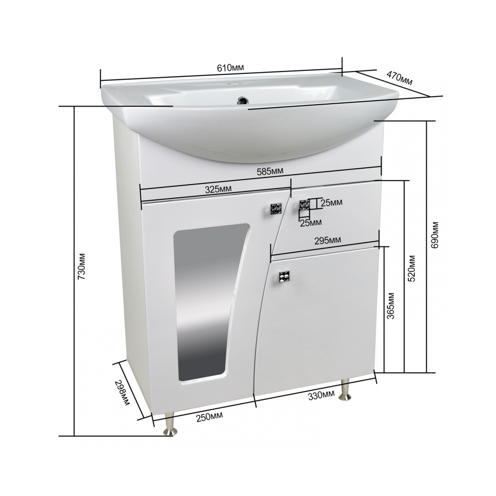 Тумба DORATIZ Селена 60 под умывальник Уют 60, Амур 60, белый, 1 ящик, со стеклом 9912.594 сочетает в себе современный дизайн и безупречное исполнение.