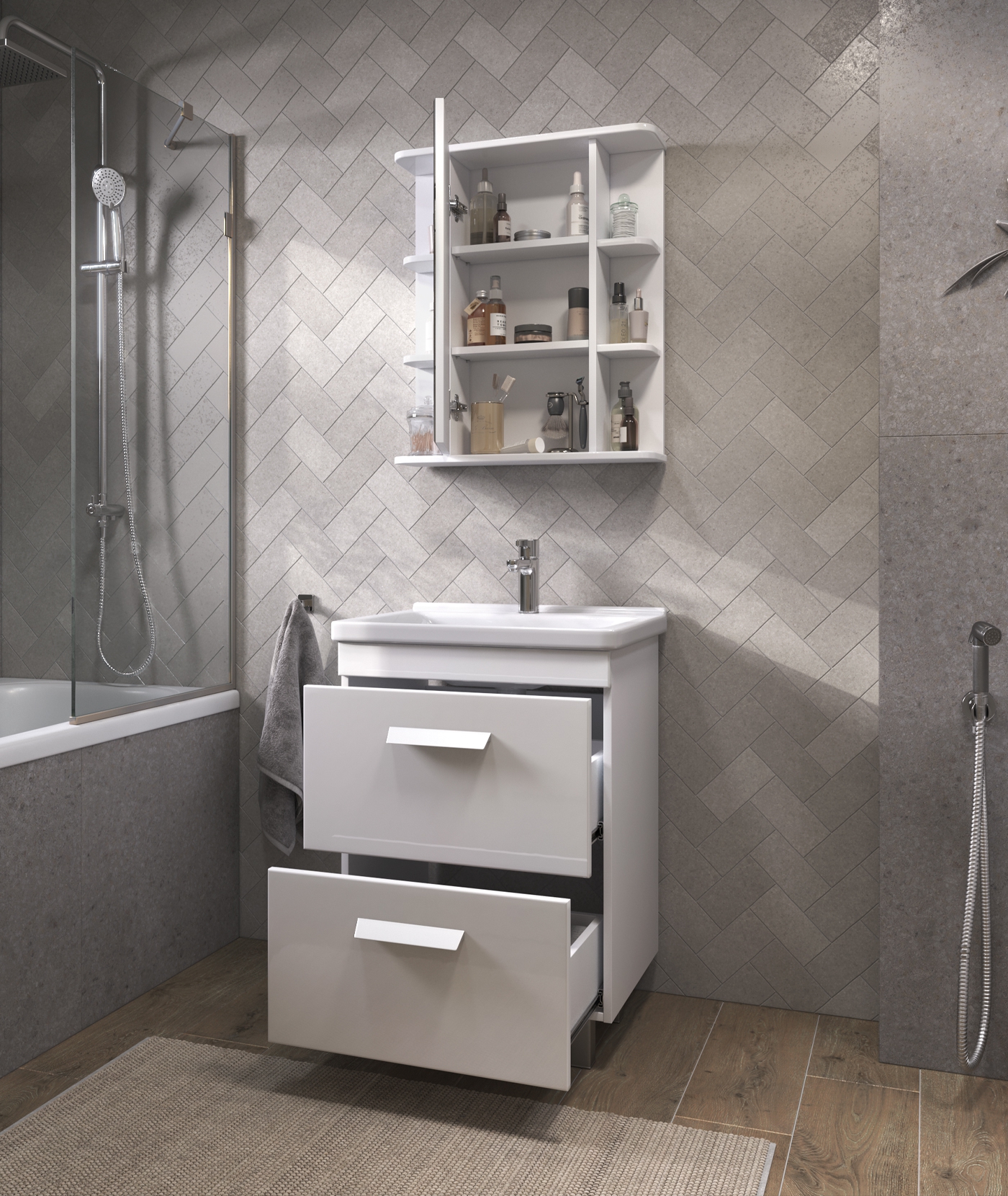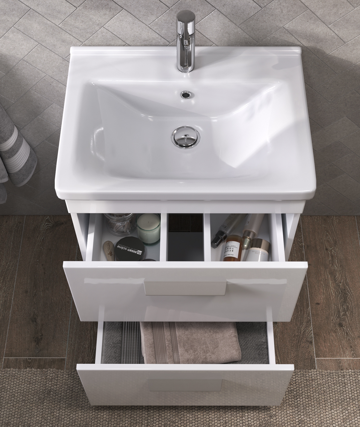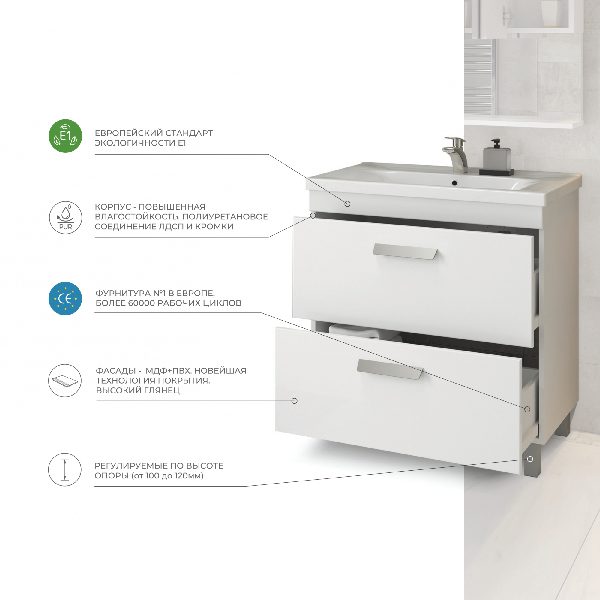 Тумба "VIGO" Nova 700-0-2 белая с умывальником "Миранда-70/COMO-70" Nova 700-0-2
