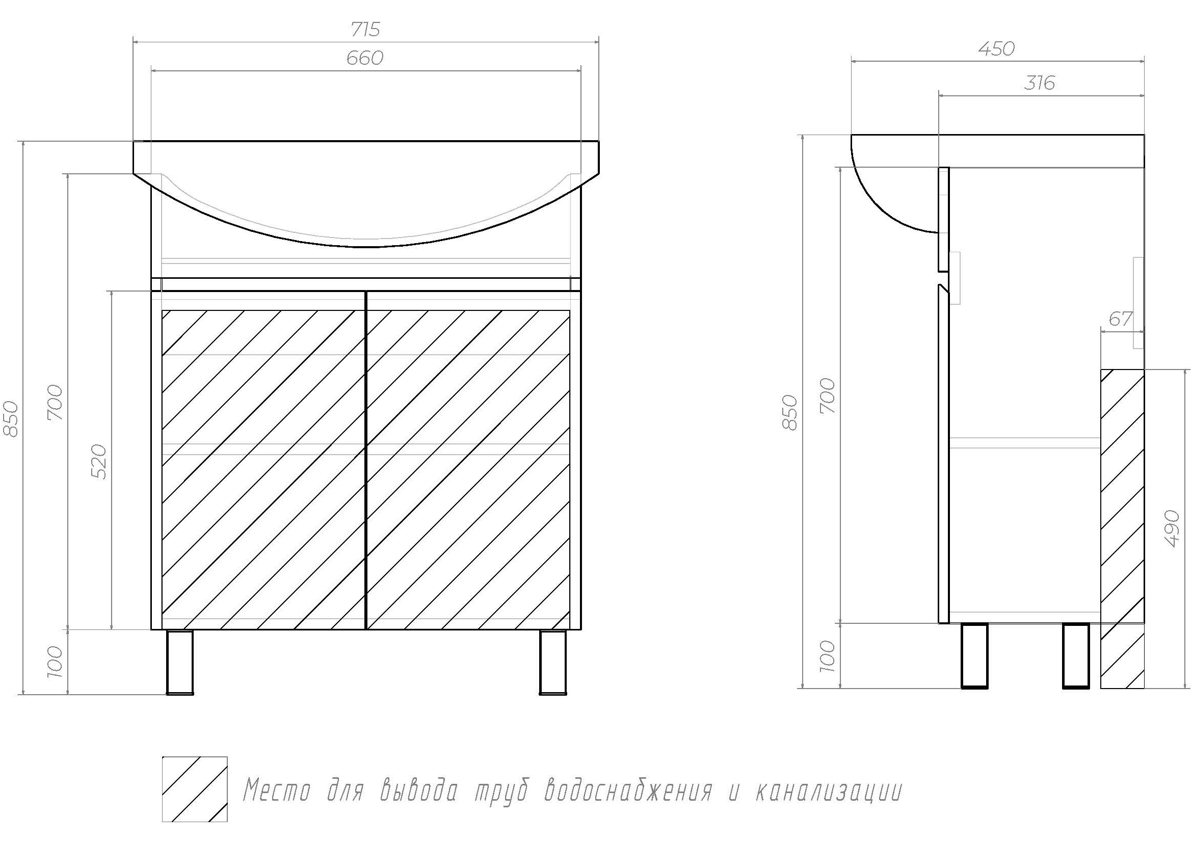 Тумба VIGO "2Wing 700-2-0" белый с умывальником "Балтика-70"