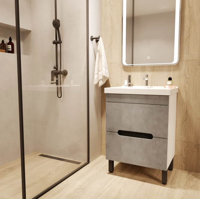 Тумба MIXLINE "Честер-60" бетон с умывальником Грэйс-60