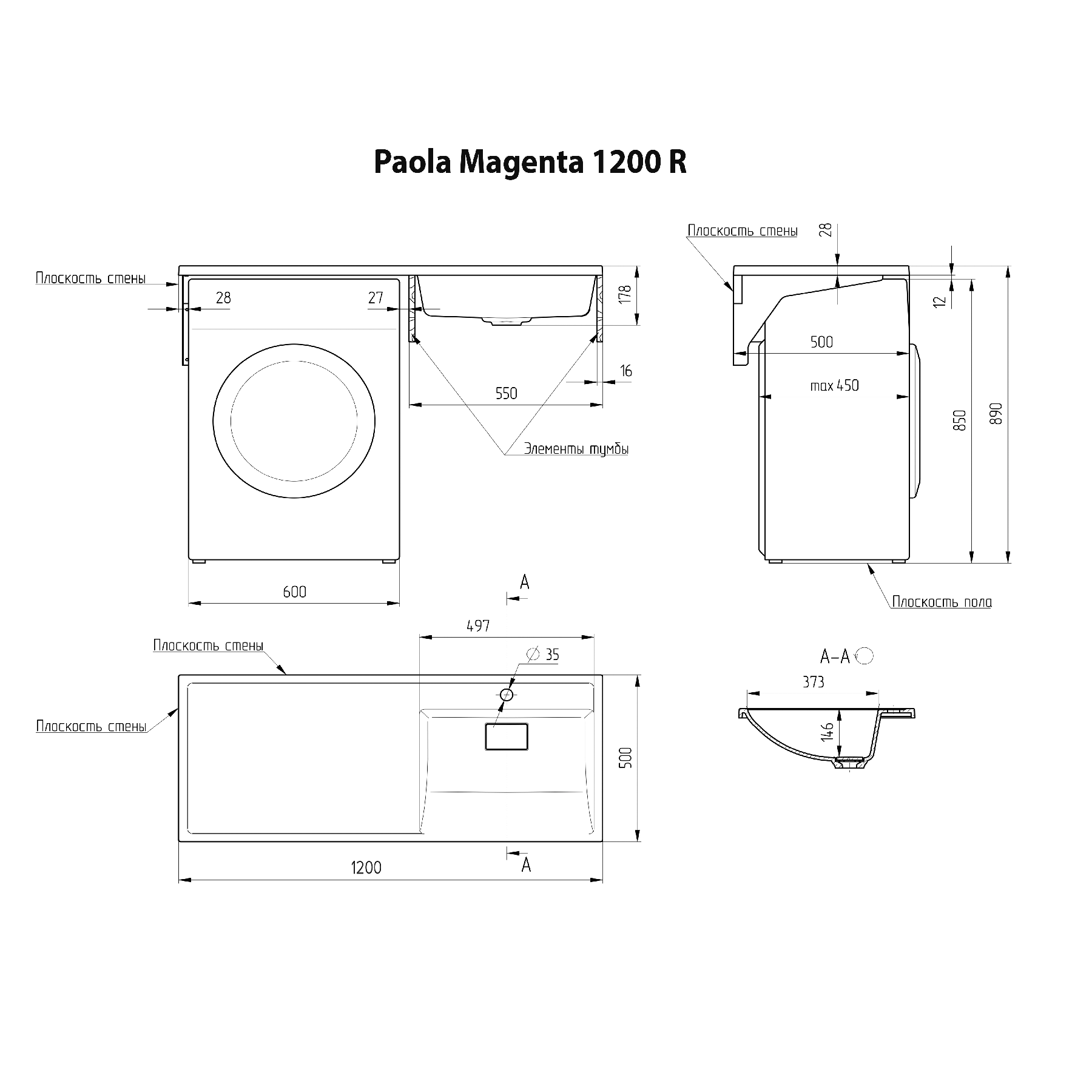 Тумба SANTREK HOME "Бари 120" белый глянец с умывальником "Magenta 1200" правый на стир. машину