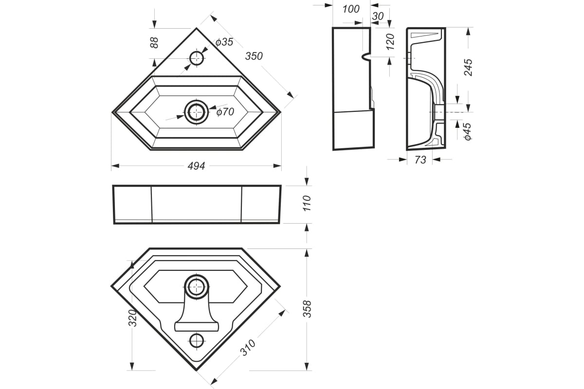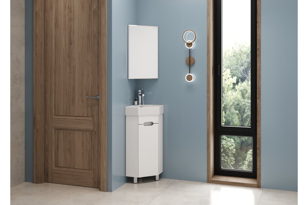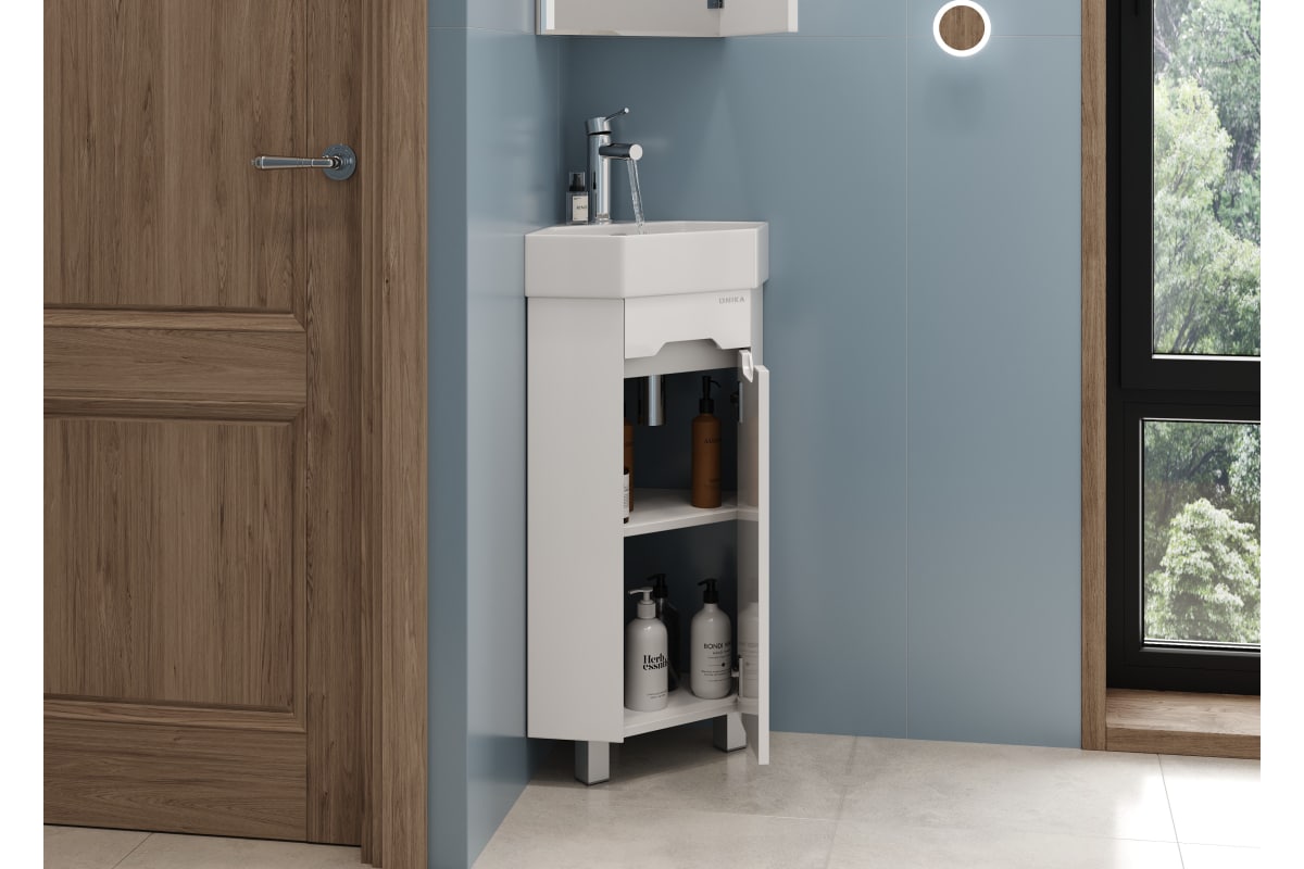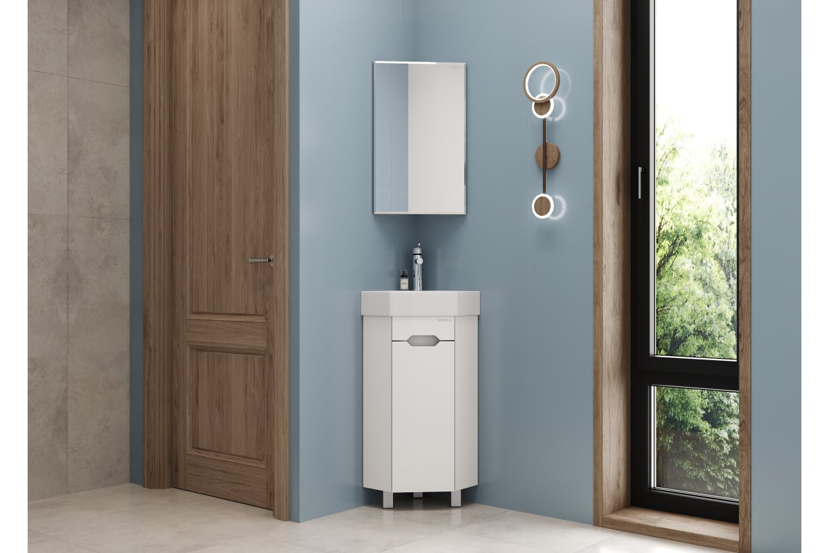 Тумба Onika "Айленд 35" угловая белая с умывальником "Sanita LINE 35" арт. 103501