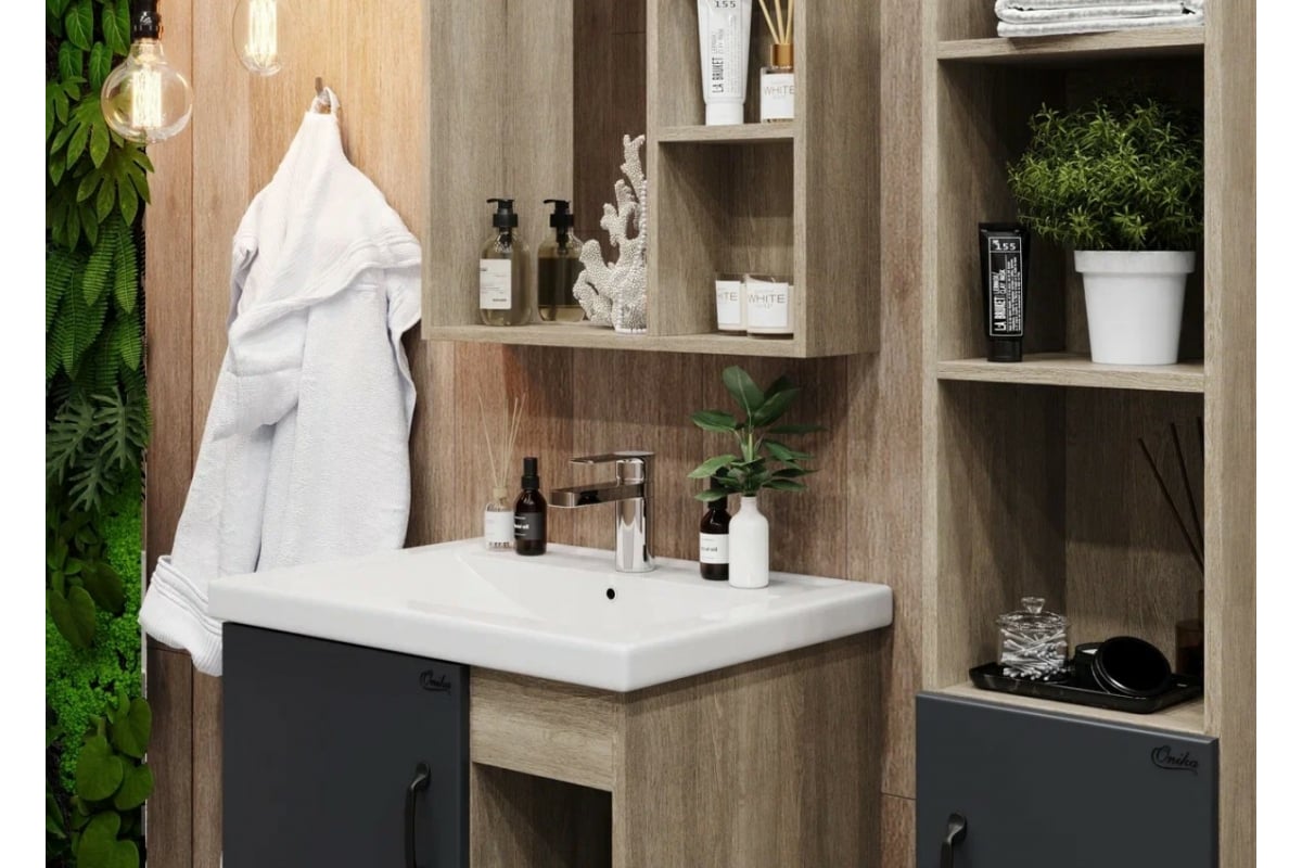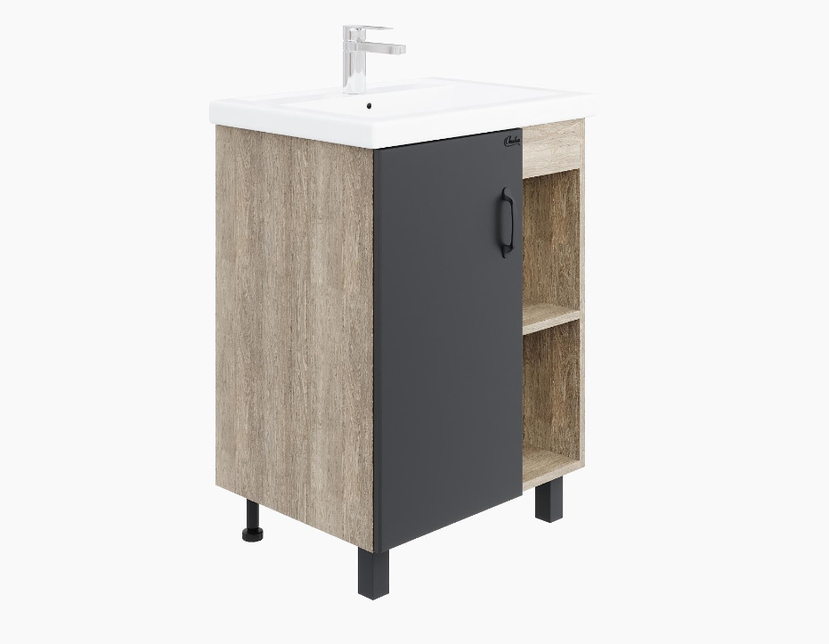 Тумба Onika "Тимбер 60" серая матовая/дуб сонома с умывальником "Фостер 60" арт. 106116