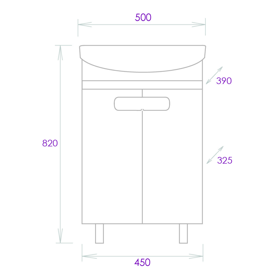 Тумба Харпер 50 с умывальником Carina-50 напольная белая глянцевая
