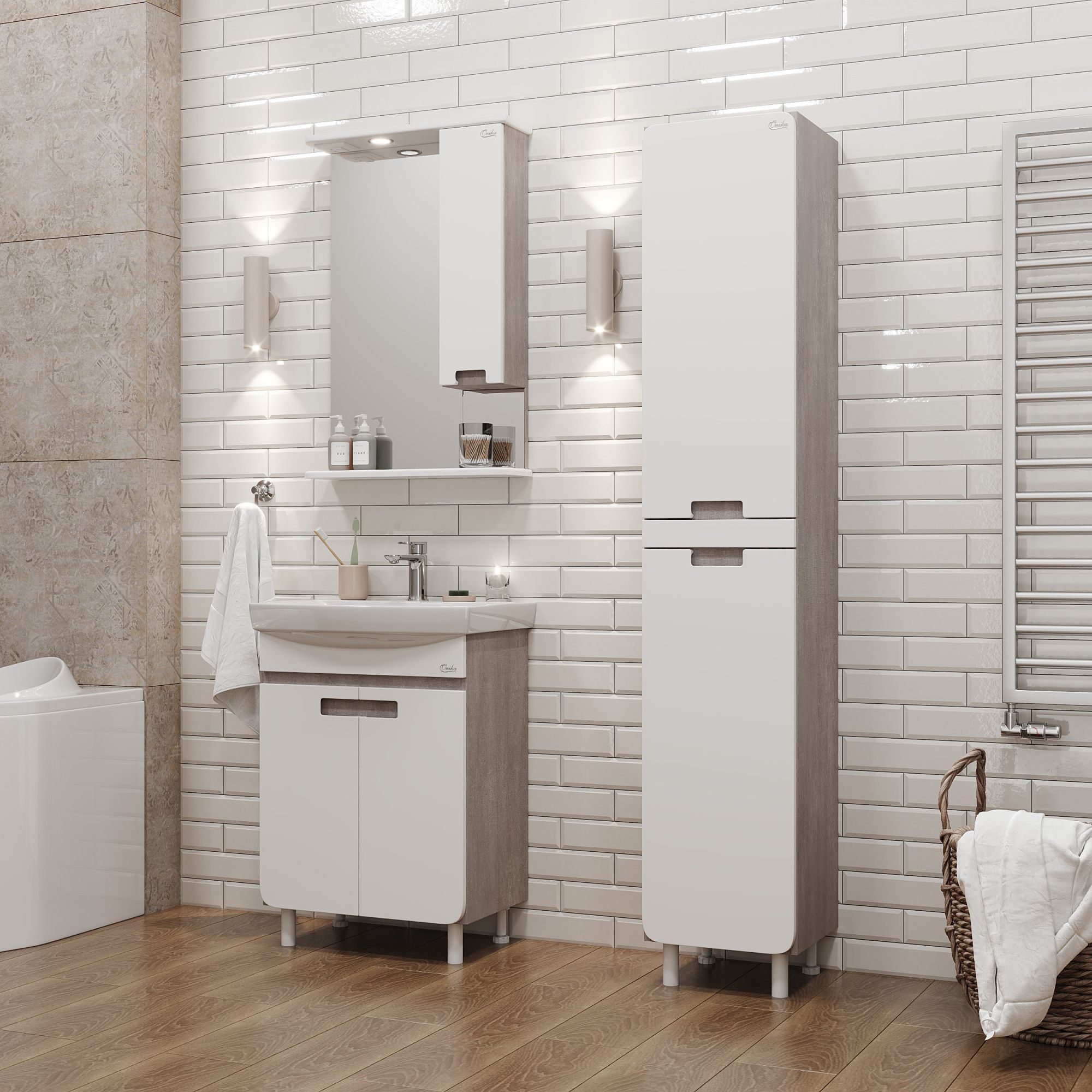 Тумба Onika ХАРПЕР 50. 10 поможет обустроить пространство ванной комнаты и привнесет в интерьер ощущение тепла и уюта. Уникальность тумбы в ее дизайне: корпус цвета мешковины со структурой бетона отлично сочетается с белым матовым фасадом soft-touch с закругленными углами. Ручки, изящно интегрированные в фасад, позволяют сделать эксплуатацию мебели более удобной и практичной. Одно большое отделение с полкой за двумя распашными дверцами, оснащенными системой плавного закрывания, позволит вместить все необходимые в ванной мелочи. Корпус тумбы выполнен из ЛДСП, фасад - из МДФ в пленке, устойчивых к механическим воздействиям, перепадам температур и высокой влажности.