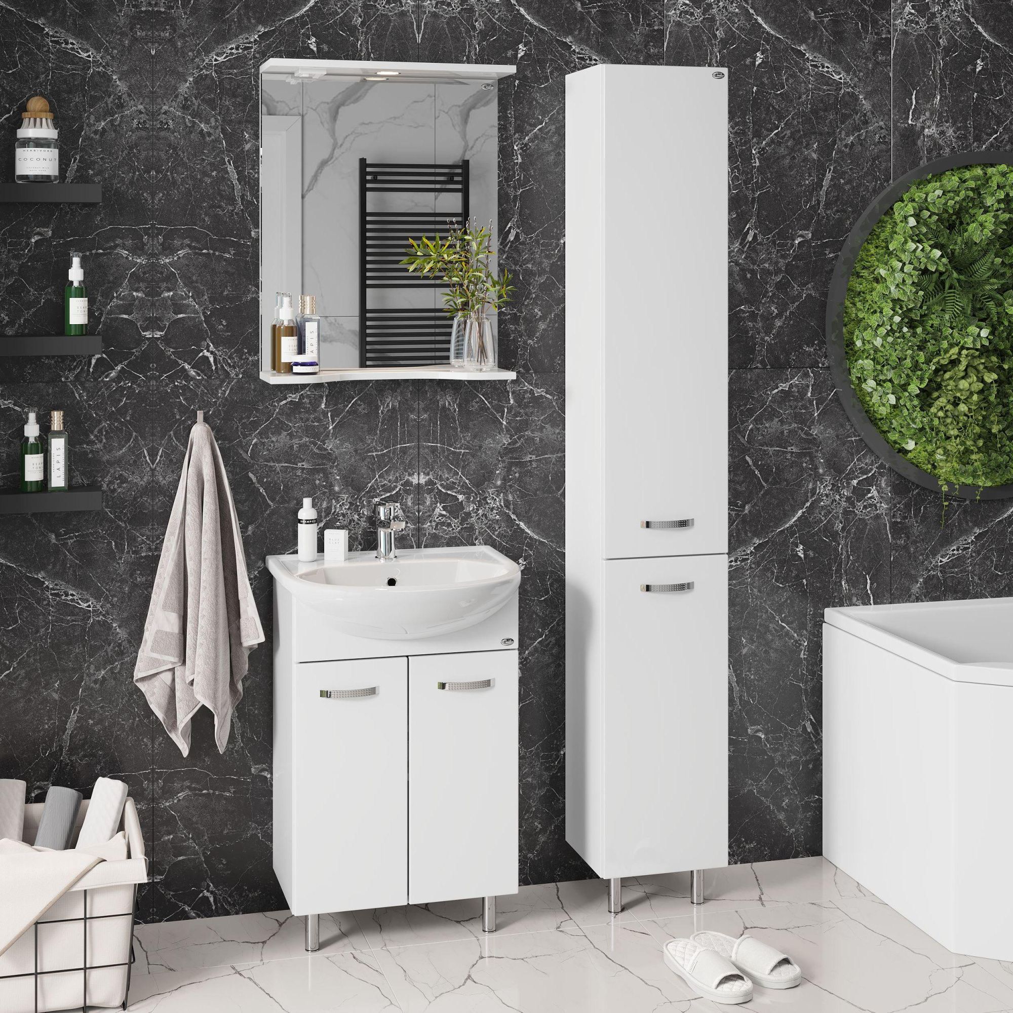 Тумба Onika КОРАЛЛ 50 - это идеальное сочетание минимализма, функциональности и цены. Строгие формы без декора и стильные хромированные ручки на двух распашных дверях, скрывают просторное внутреннее пространство с полкой для размещения необходимых бытовых принадлежностей.