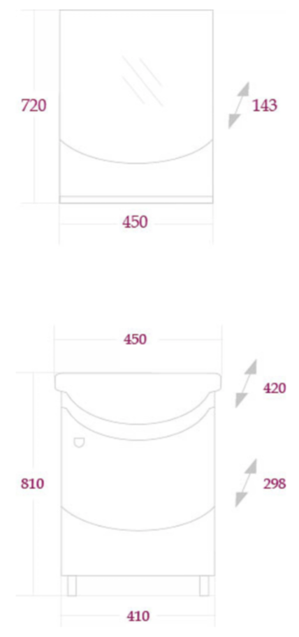 Размеры тумбы без учета раковины и ножек 41x28x68 cм.