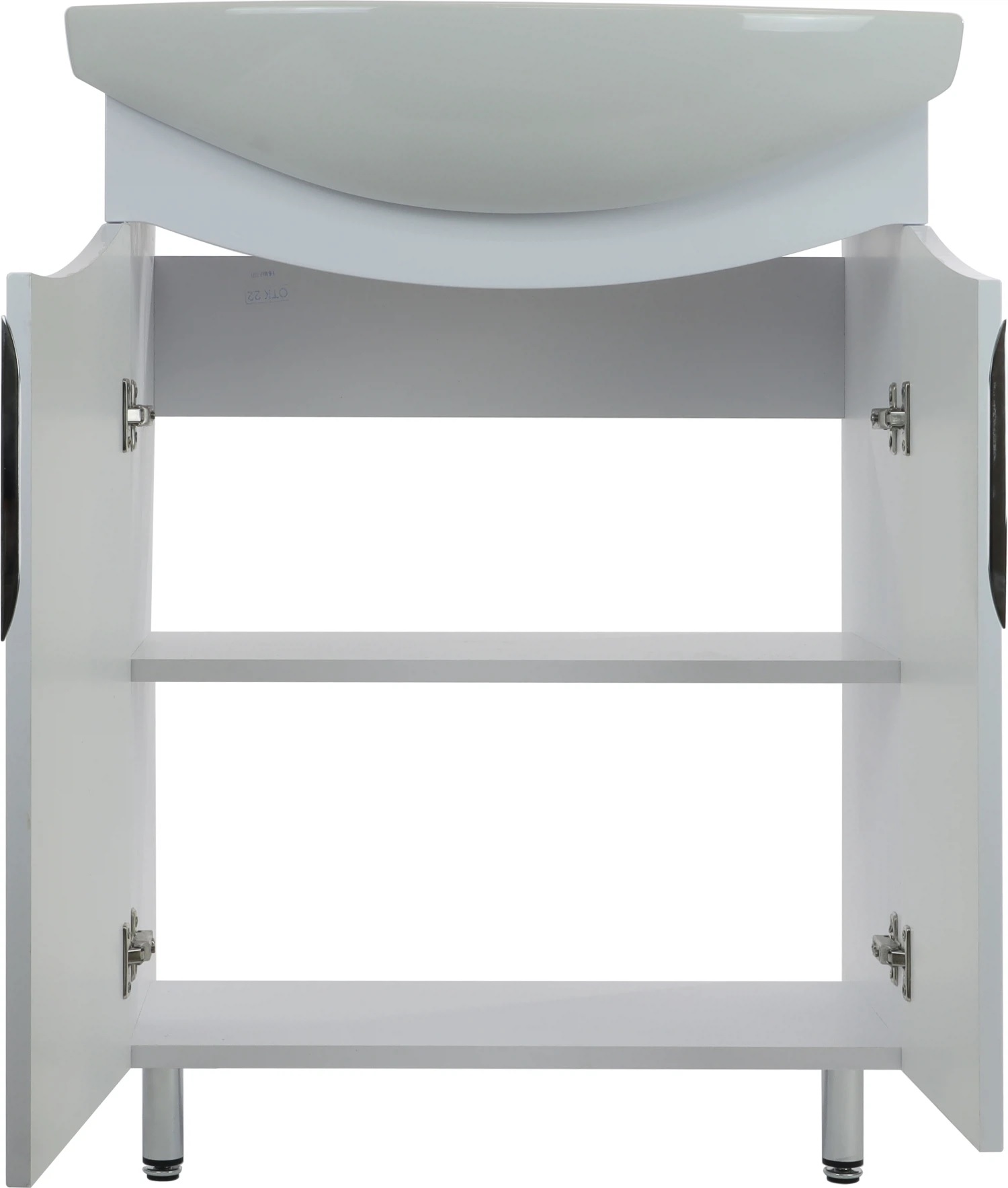 Тумба Тропикана 65 DORATIZ 9912.811 белая, под умывальник Балтика 65 выполнена в сдержанном лаконичном дизайне. Двухстворчатые фасады украшены изящной фрезировкой.