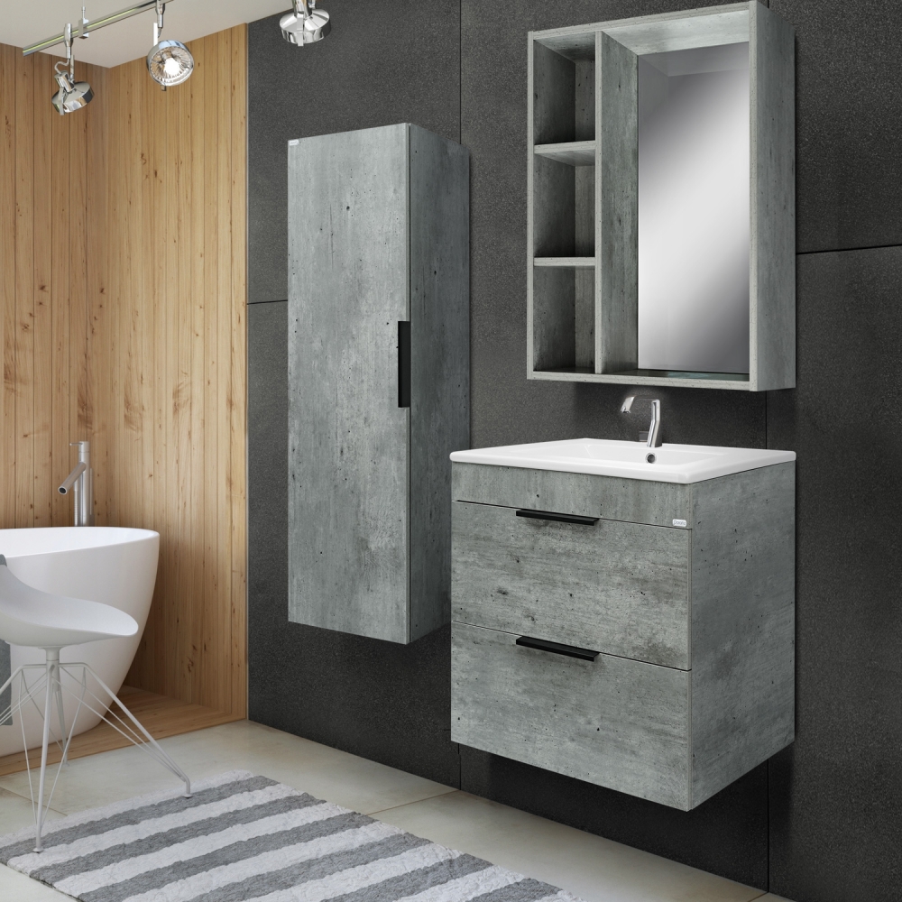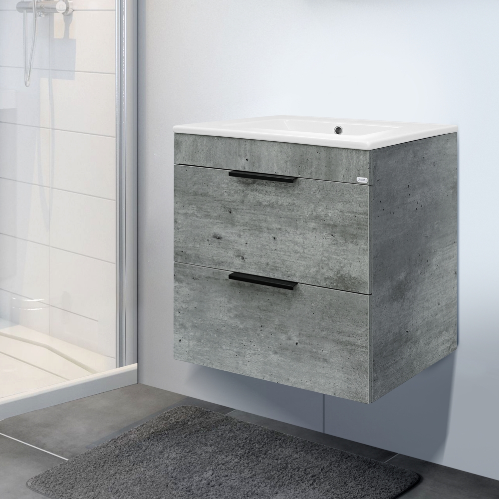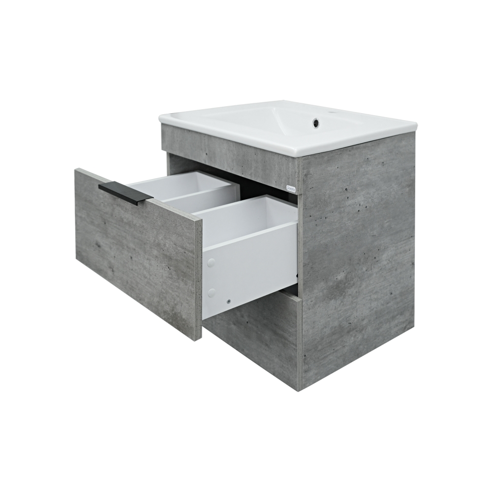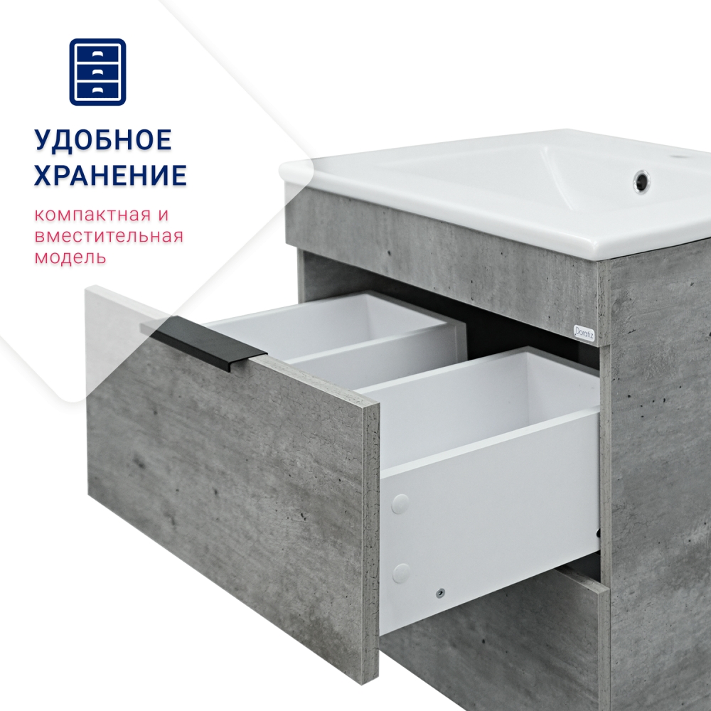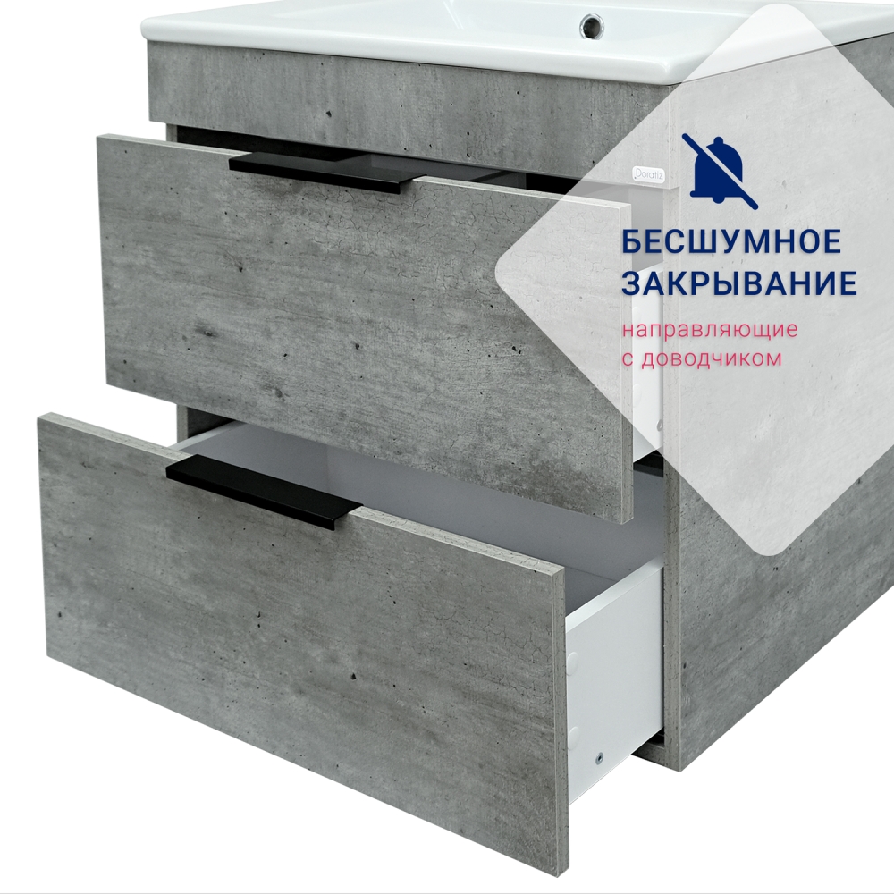 Тумба DORATIZ "Родос 60" подвесная метрополитан грей с умывальником "Quadro 60" 9908.180