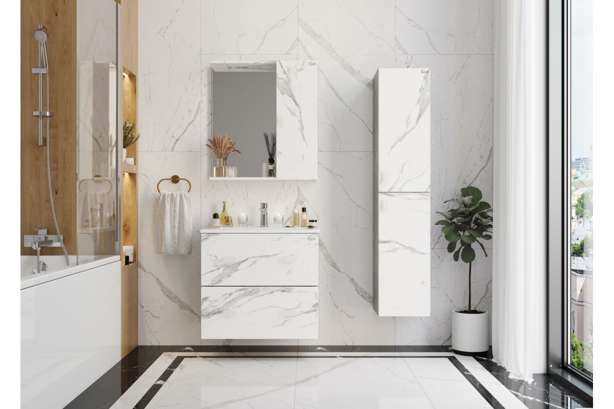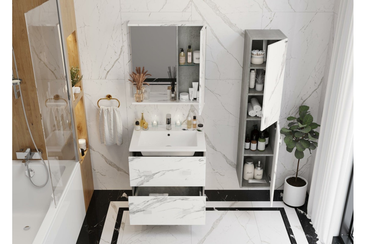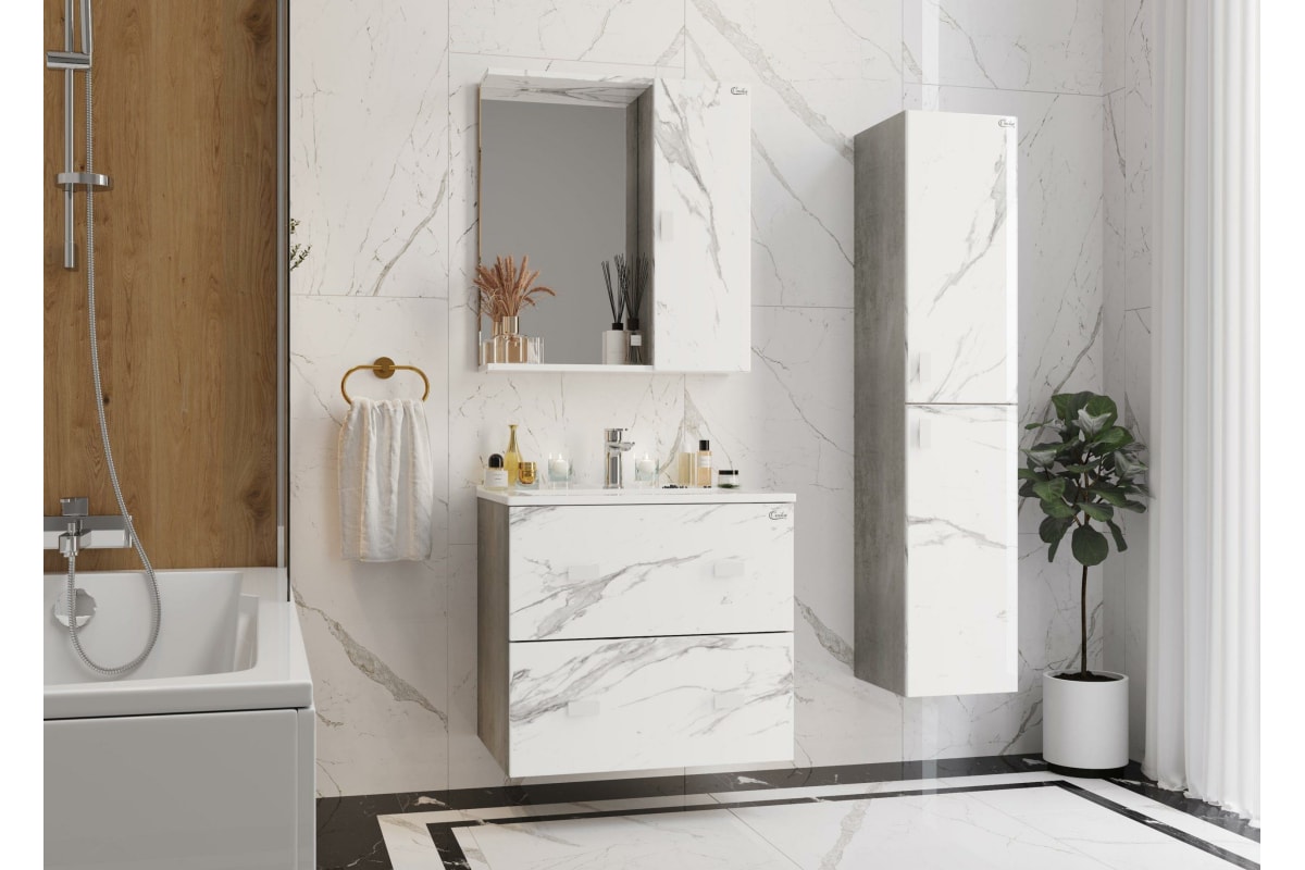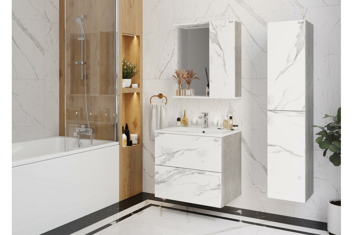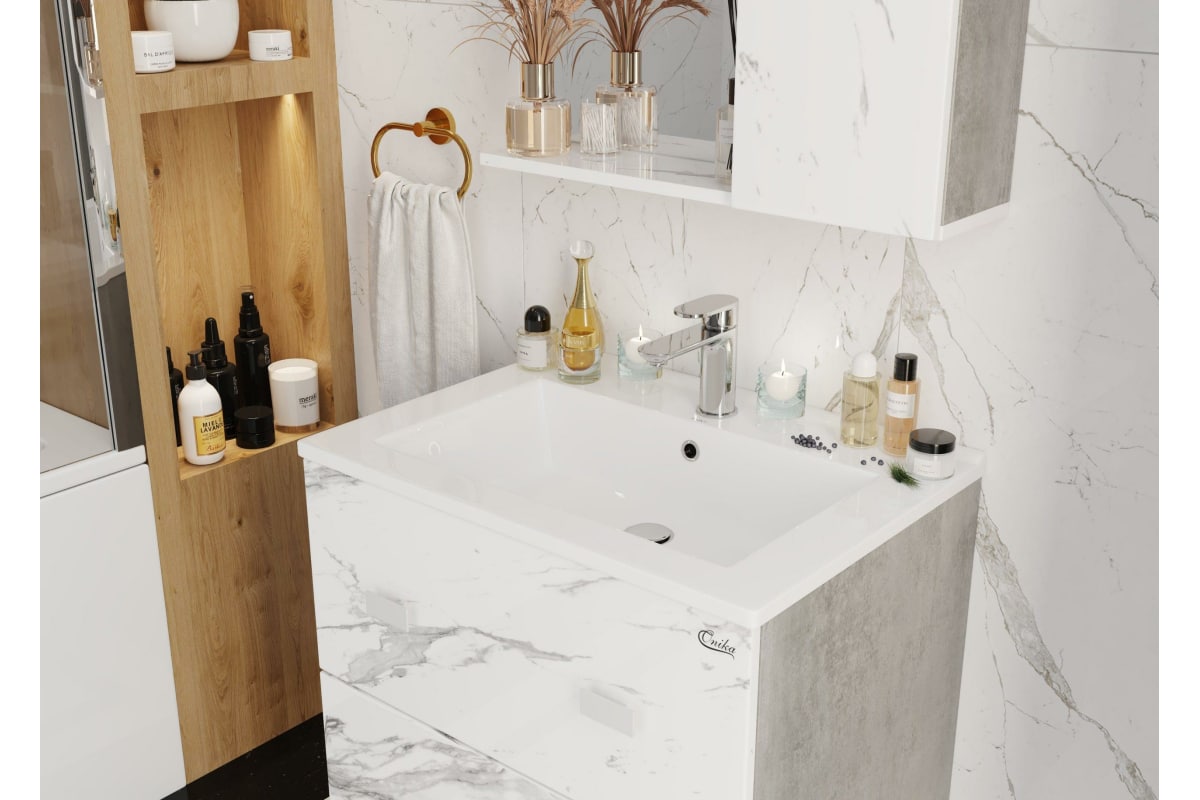 Подвесная тумба с раковиной Onika МАРБЛ 65.13 мрамор/камень бетонный 106548 станет стильным и функциональным элементом пространства современной ванной комнаты. Спроектированная дизайнерами в минималистичном облике, тумба отражает самые актуальные расцветки сезона - бетон и мрамор.