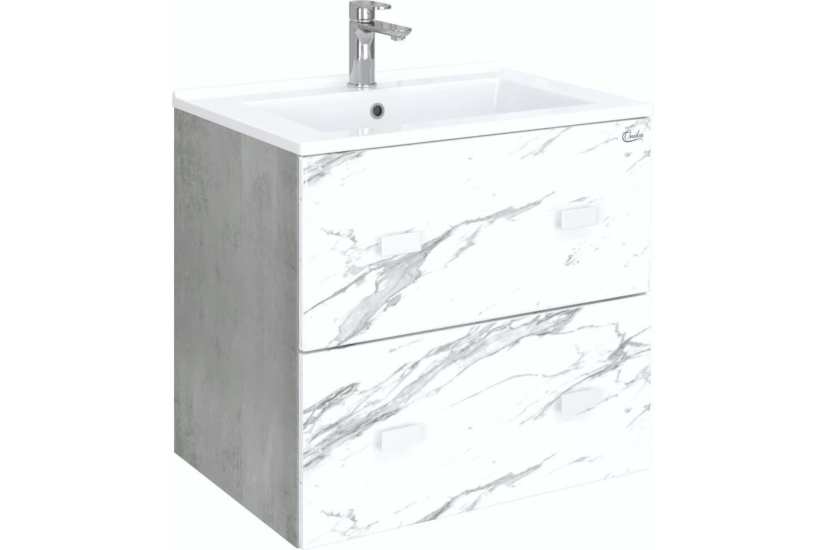 Тумба Onika "Марбл 65" подвесная мрамор/камень бетонный с умывальником "Оскар 65" арт. 106548