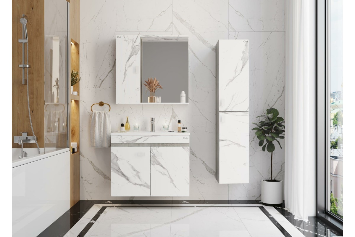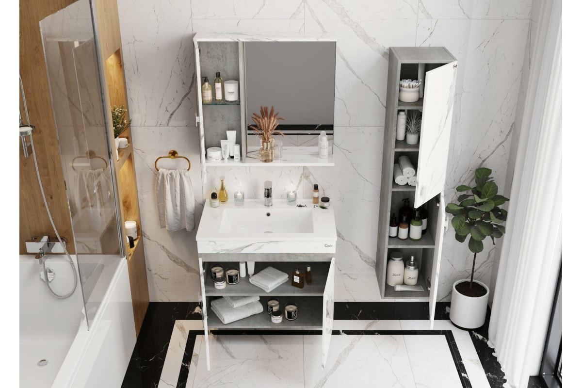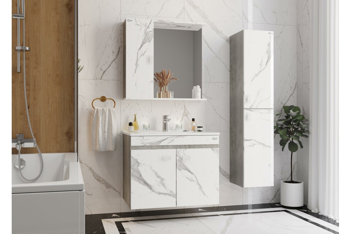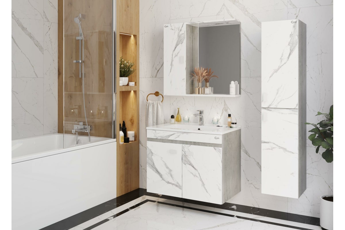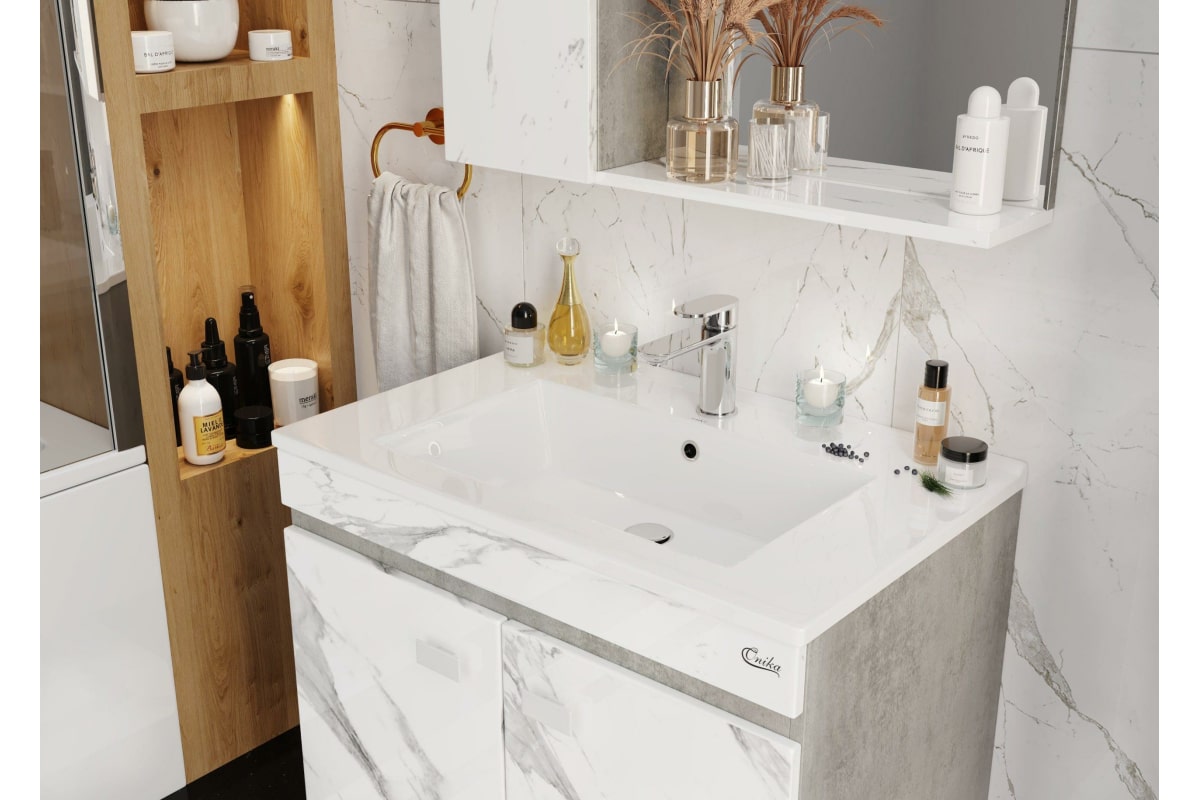 Подвесная тумба с раковиной Onika МАРБЛ 75.02 мрамор/камень бетонный 107517 станет стильным и функциональным элементом пространства современной ванной комнаты. Спроектированная дизайнерами в минималистичном облике, тумба отражает самые актуальные расцветки сезона - бетон и мрамор.
