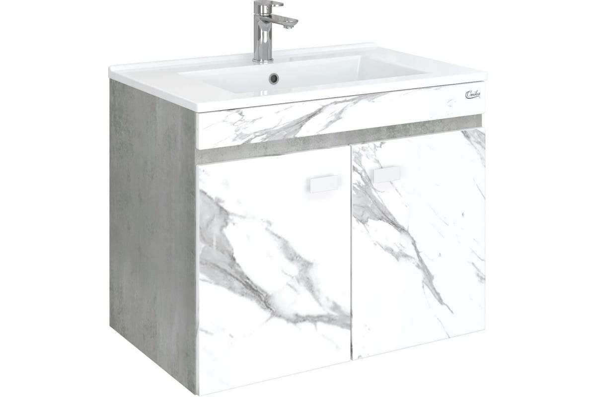 Тумба Onika "Марбл 75" подвесная мрамор/камень бетонный с умывальником "Оскар 75" арт. 107517