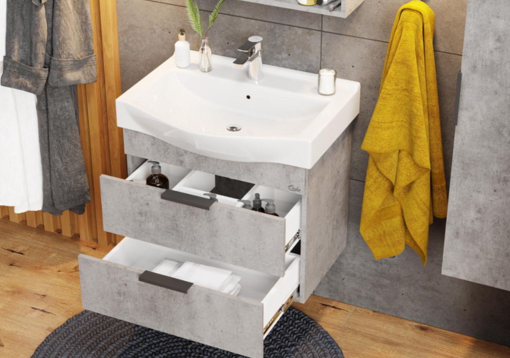 Подвесная тумба Onika ДЕВИС 65 отличается чёткой геометрией форм и создана для тех, кто ценит современный лаконичный дизайн, холодный брутальный эффект бетона, а также безупречное исполнение.
