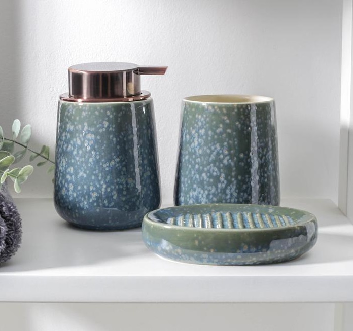 Набор аксессуаров для ванной комнаты «Барма», 3 предмета (мыльница, дозатор для мыла 400 мл, стакан 400 мл), цвет синий -