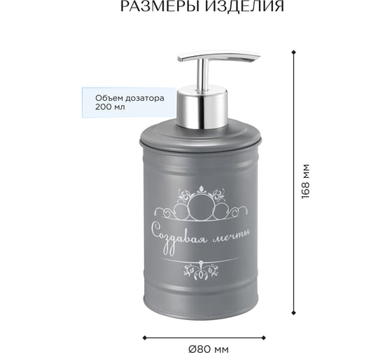 Дозатор для жидкого мыла Fora Создавая мечты настольный, серый