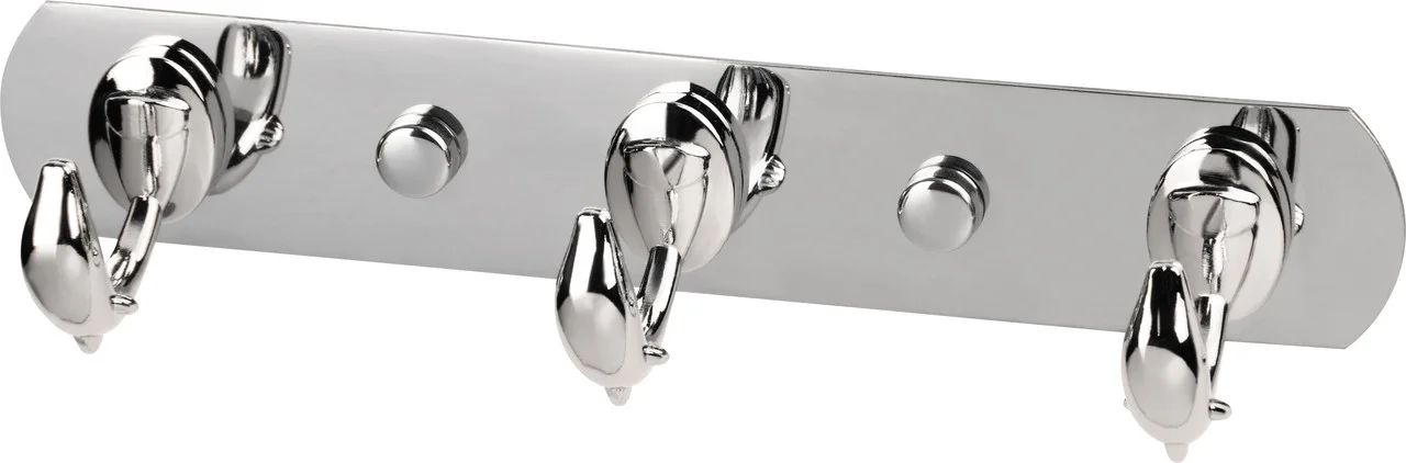 Вешалка для ванной комнаты, сауны изготовлена из нержавеющей стали с декоративными крючками в виде фигурок дельфинов. Вешалка идеально подойдет для размещения полотенец, халатов и другой текстильной продукции. Изделие крепится к стене с помощью дюбелей и саморезов (входят в комплект).