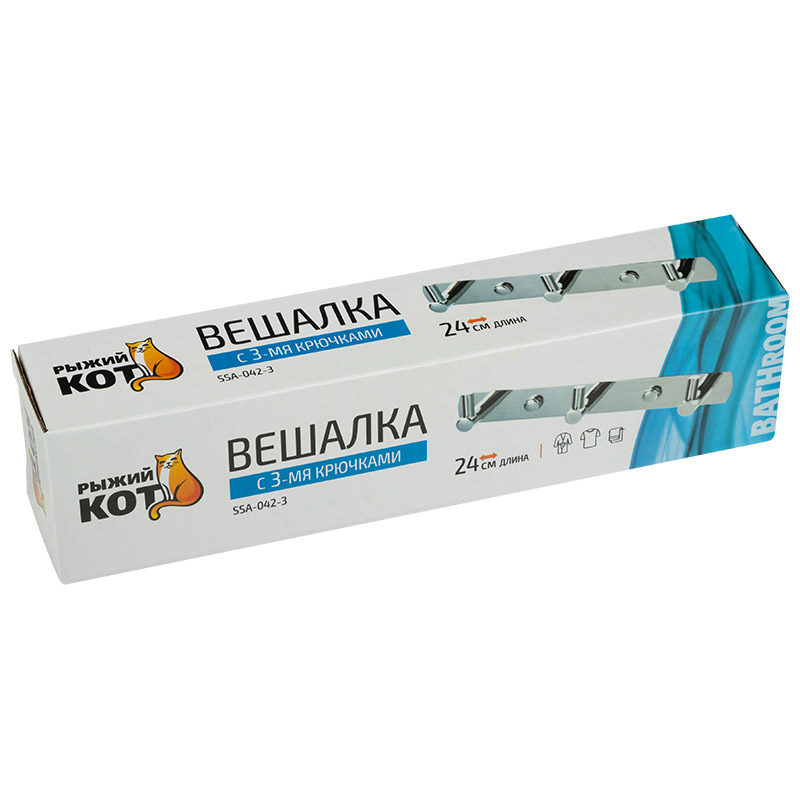 Вешалка с 3-мя крючками "РЫЖИЙ КОТ" Сталь арт. SSA-042-3
