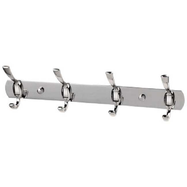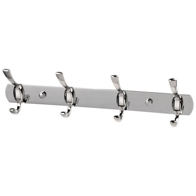 Вешалка с 4-мя крючками для ванной комнаты, сауны идеально подойдет для размещения полотенец, халатов и другой текстильной продукции. Изделие крепится к стене с помощью дюбелей и саморезов (входят в комплект).