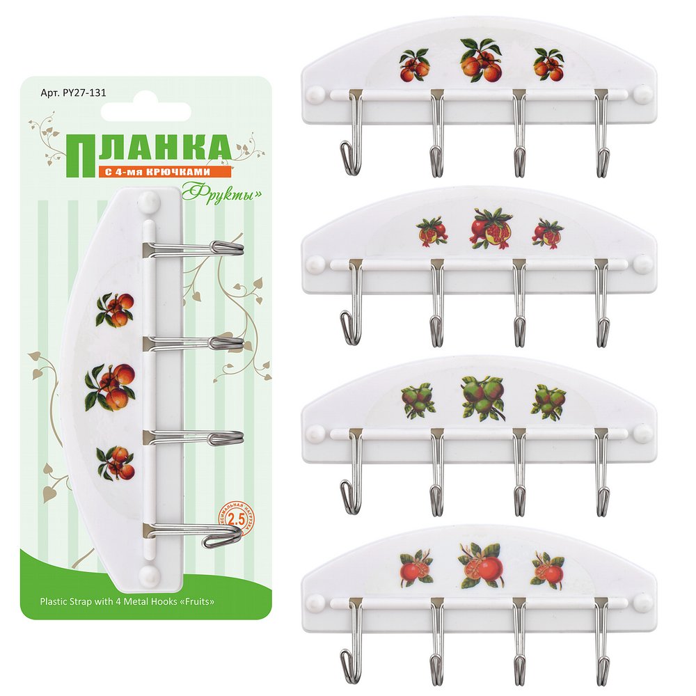 Планка с 4 крючками пласт. Фрукты микс PY27-131