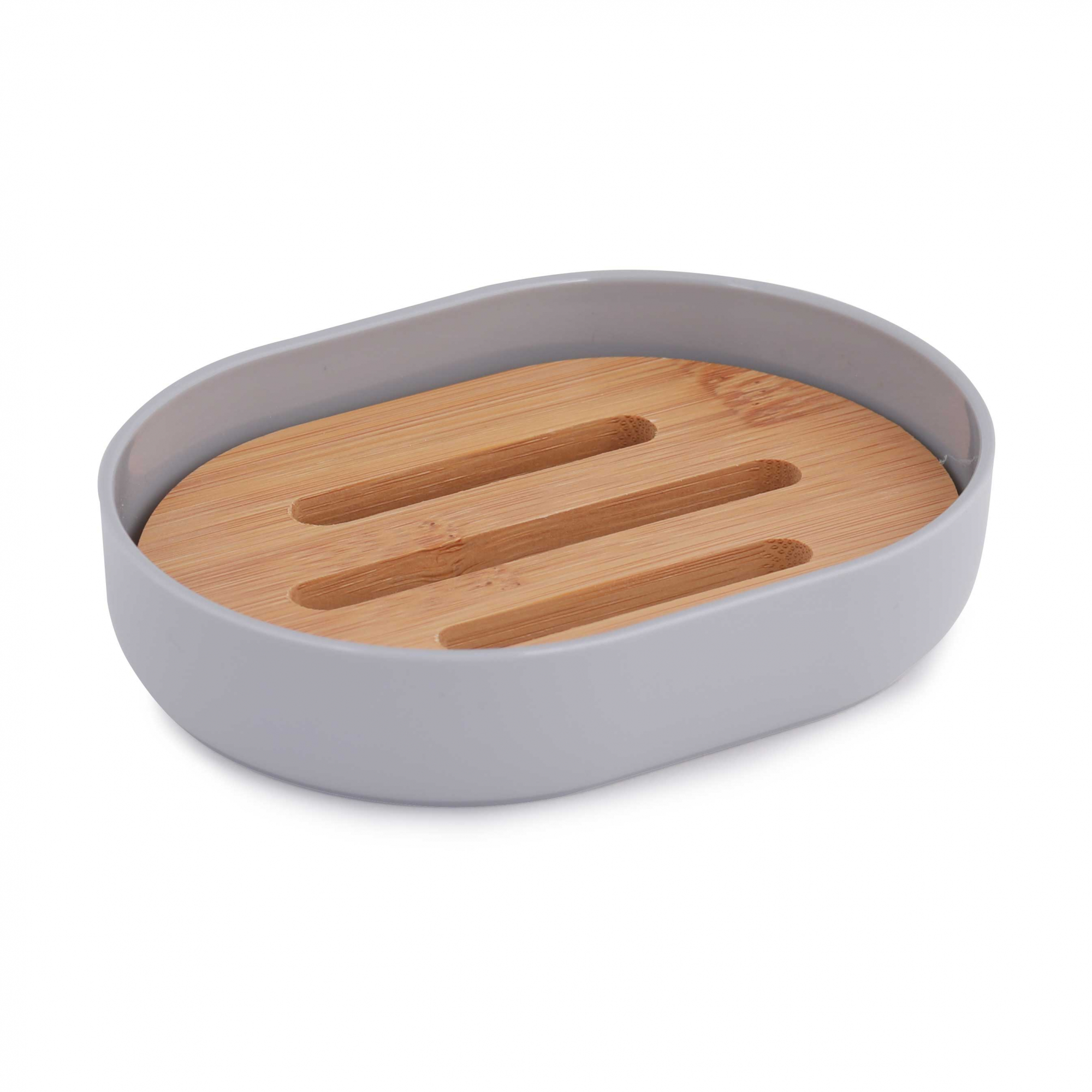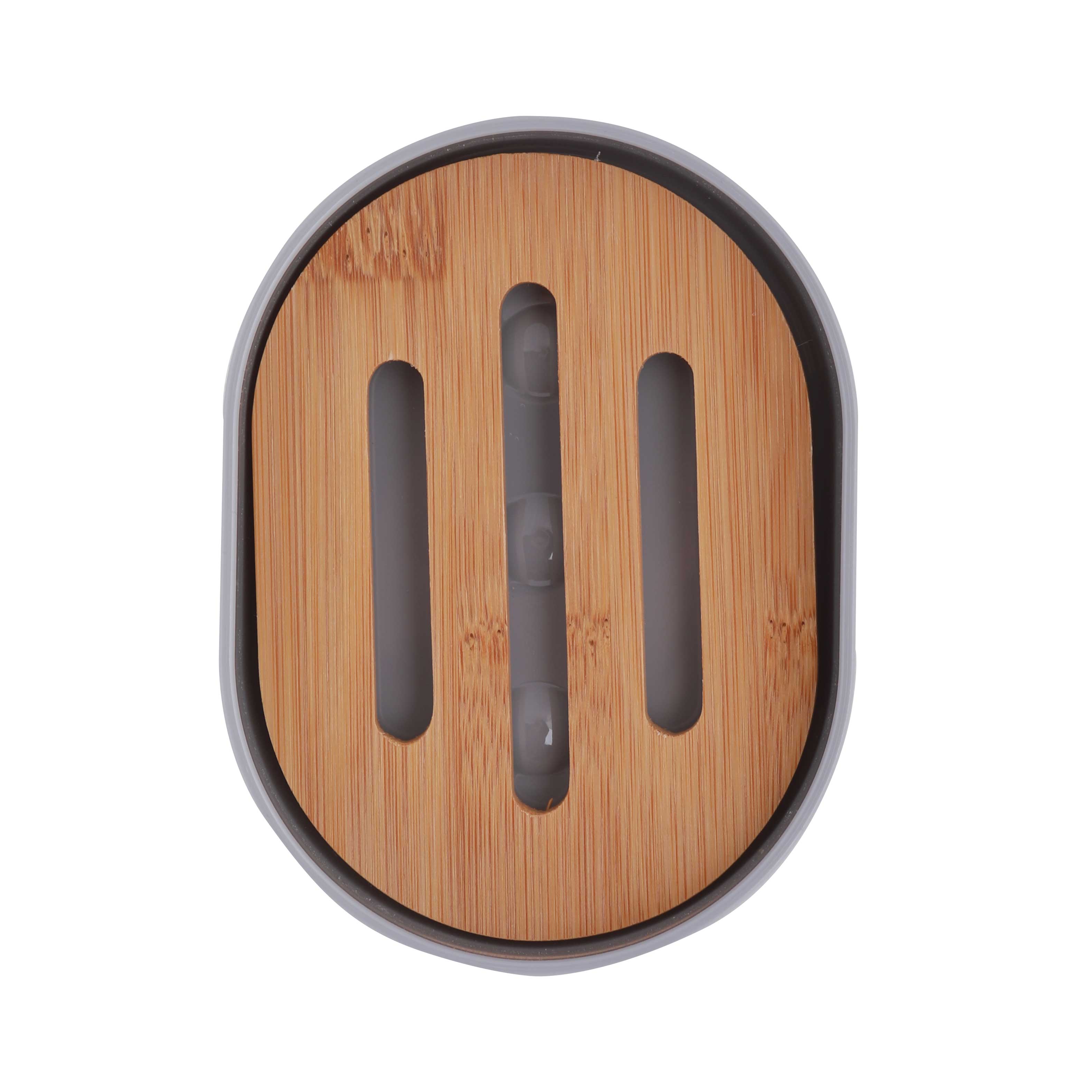 Емкость мыльницы изготовлена из качественного пластика, вставка произведена из натурального растительного материала - бамбук.