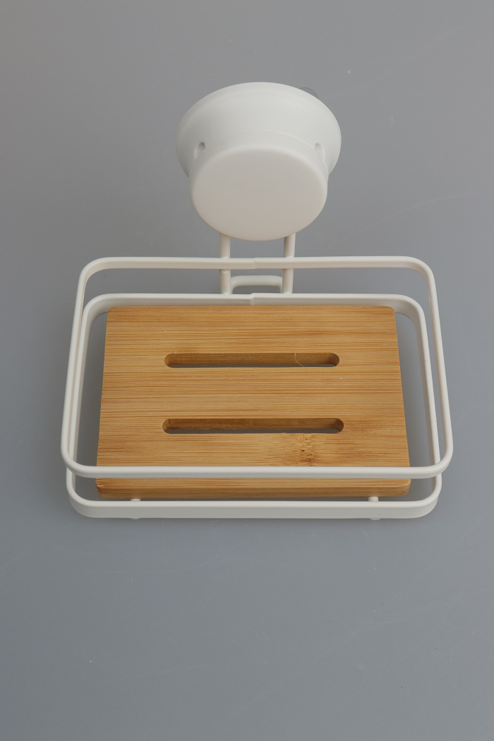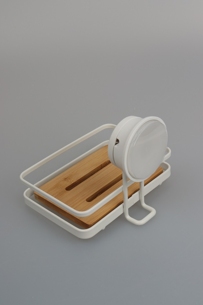 Мыльница белая металл бамбук на присоске W7741-25BP