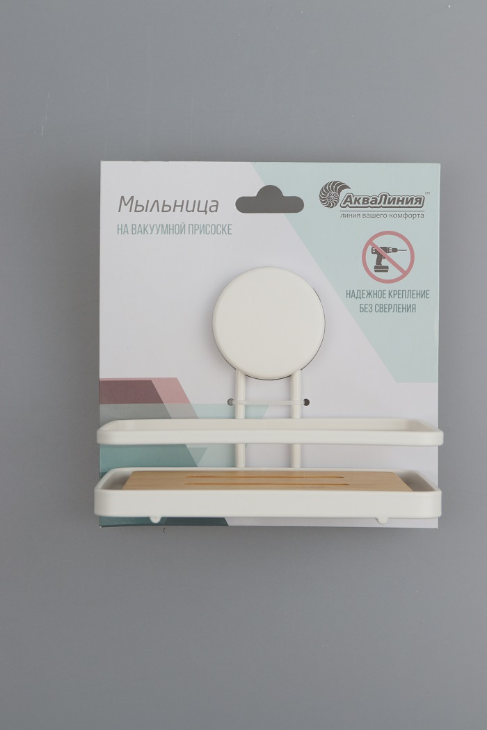 Мыльница белая металл бамбук на присоске АкваЛиния W7741-25BP