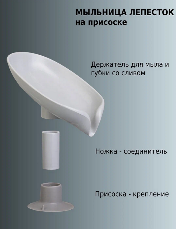 Мыльница пластиковая, настольная Лепесток - предназначена для бережного хранения кускового мыла. Мыльница оснащена сливом для воды, благодаря этому кусок мыла всегда будет сухим и не размокнет. Изготовлена из полимерного материала, крепится к любой горизонтальной поверхности при помощи присоске, которая входит в комплект. Это идеальная мыльница для экономии кускового мыла.