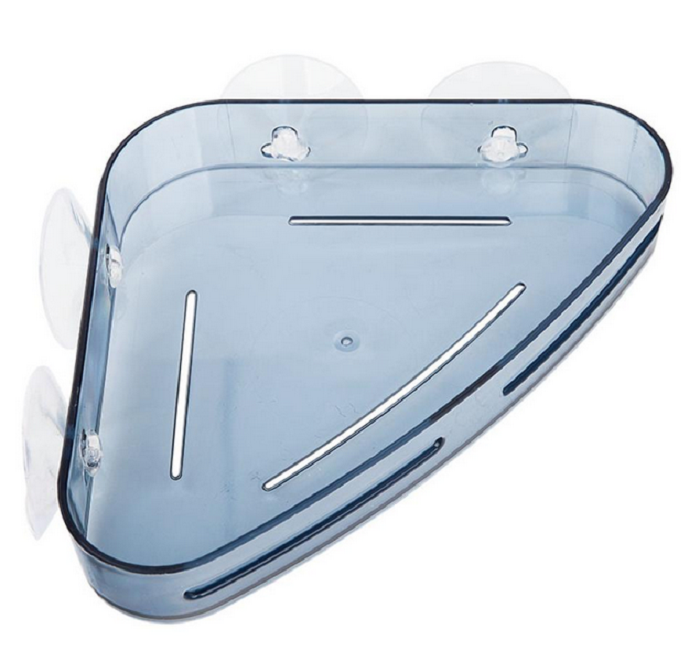 Полка для ванной угловая пластиковая на присоске голубая W6952