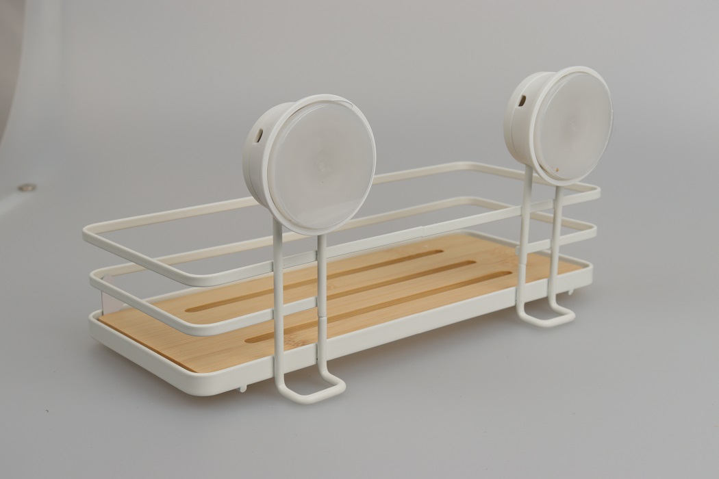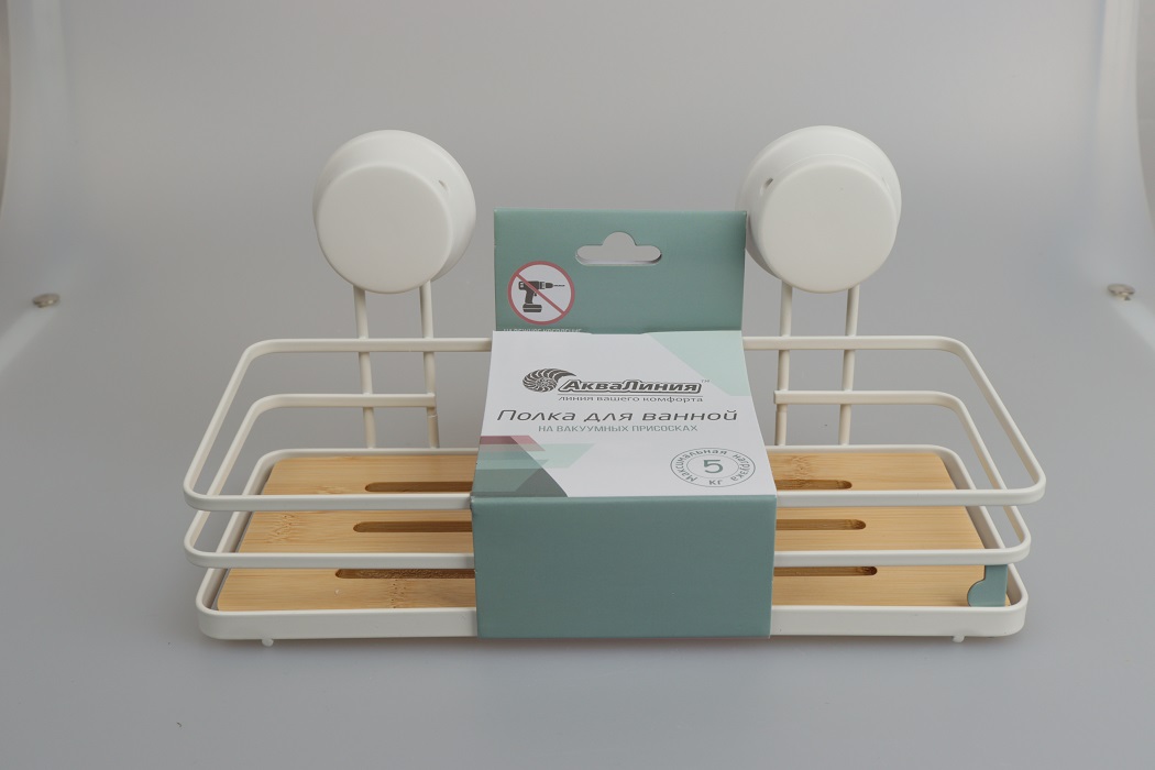 Полка для ванной белая металл бамбук на присоске W7741-26BP