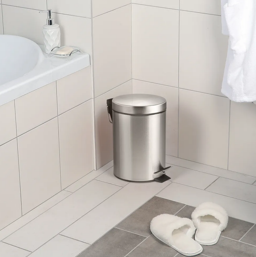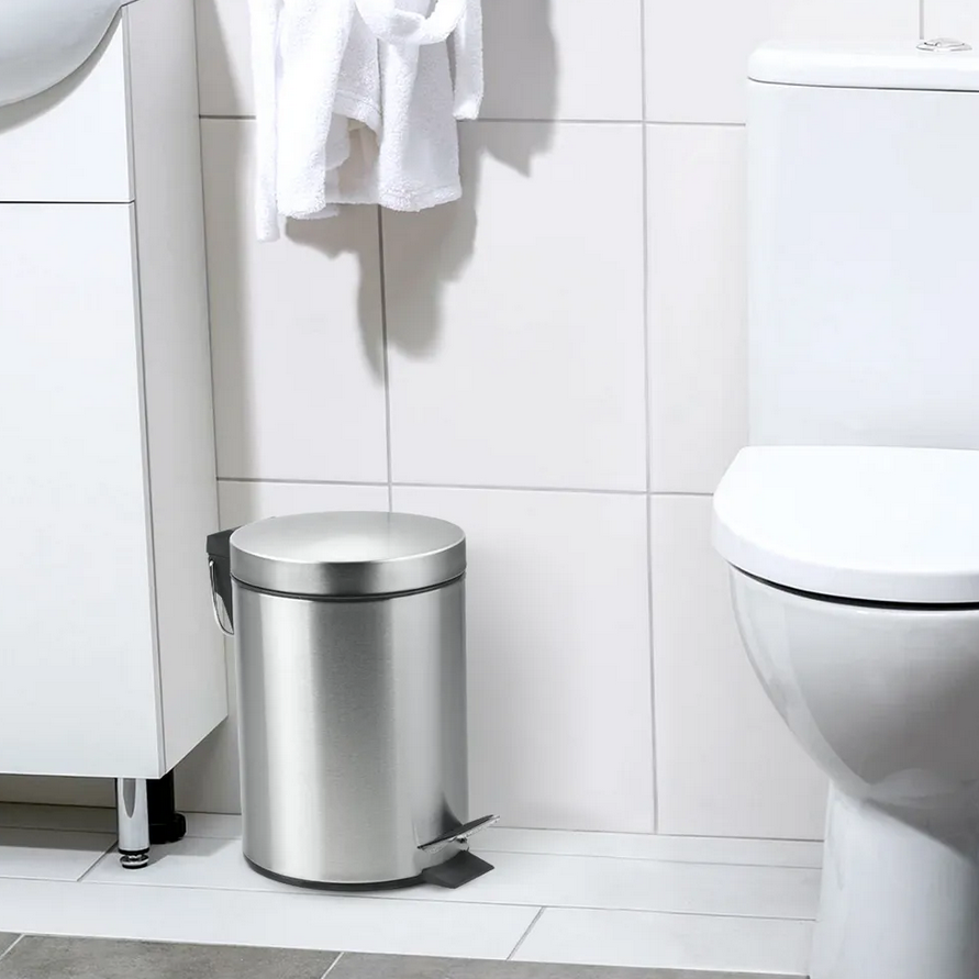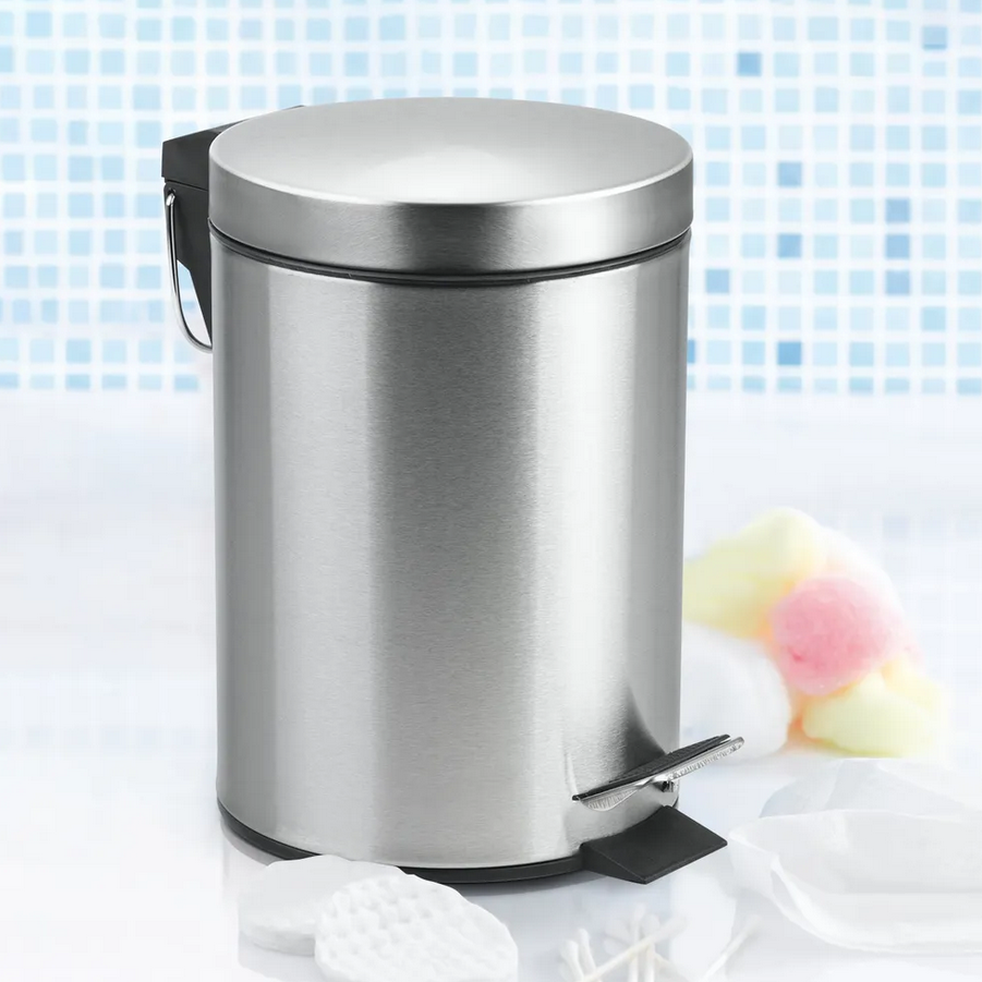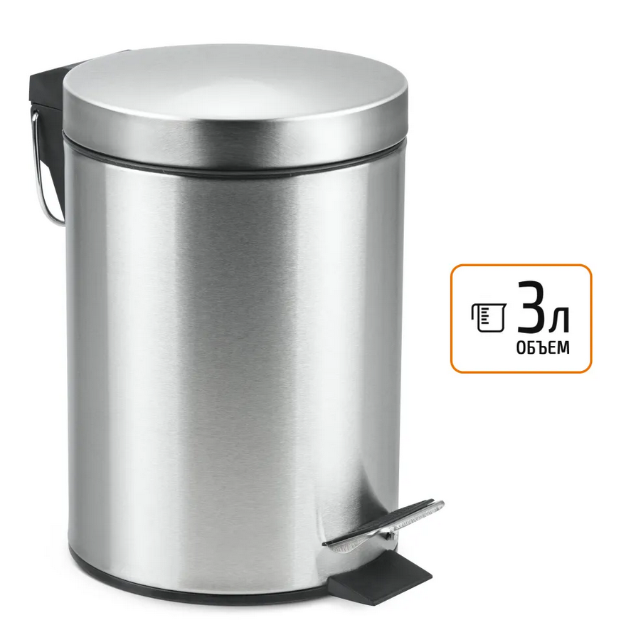 Ведро круглое для мусора с откидной крышкой предназначено для отходов, помогает поддержать порядок и чистоту, прекрасно подойдет для ванной комнаты, туалета или кухни. Изготовлено из нержавеющей стали и оборудовано педалью, с помощью которой можно открыть крышку не касаясь руками. Внутреннее пластиковое ведро -съемное, оснащенное металлической ручкой для переноса. При нажатии на педаль, крышка поднимается, плотно закрывает содержимое ведра, препятствуя распространению запахов. Нескользящая пластиковая основа ведра предотвращает повреждение пола.