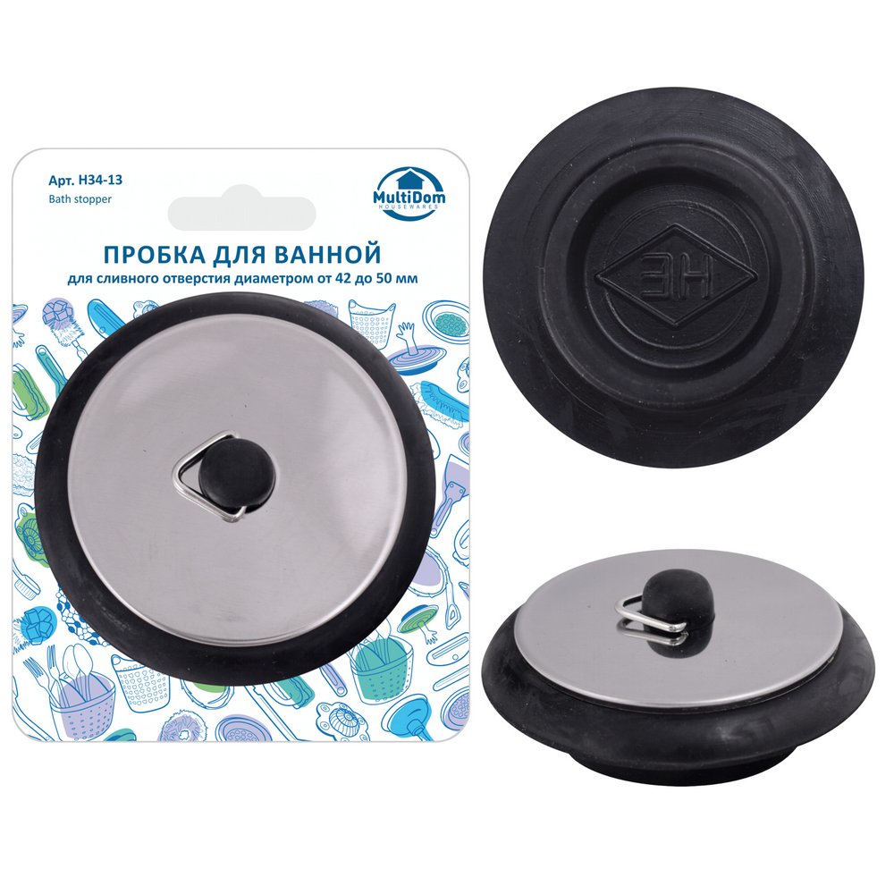 Пробка для ванной МультиДом для сливного отверстия диаметром 42х50мм. H34-13
