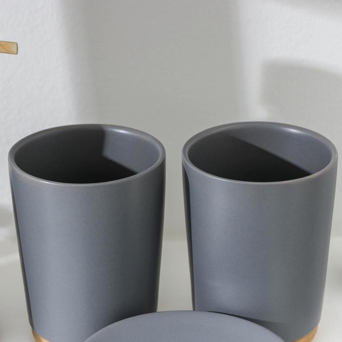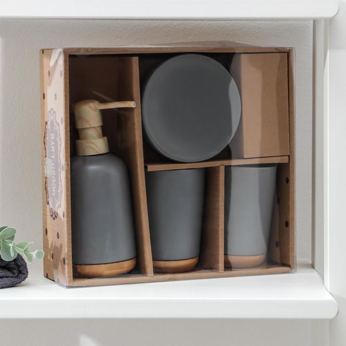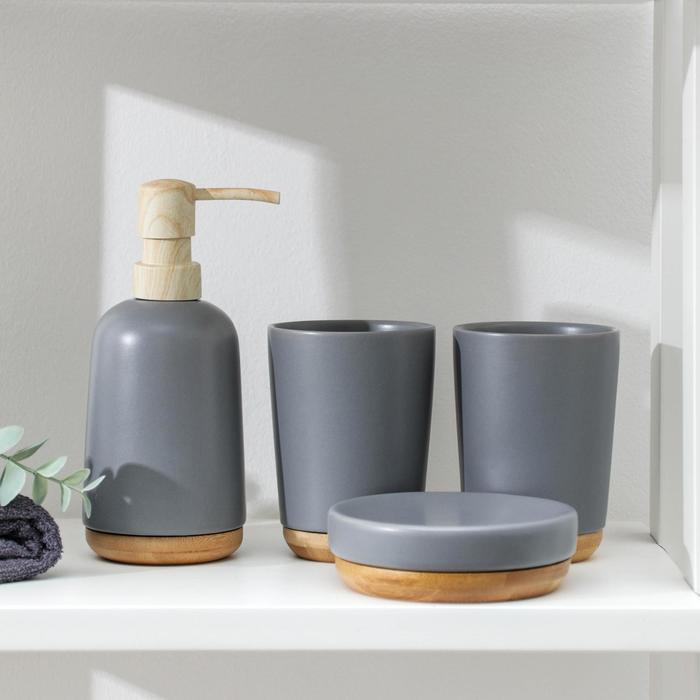 Набор аксессуаров для ванной комнаты «Эко», 4 предмета (мыльница, дозатор для мыла, 2 стакана), цвет серый