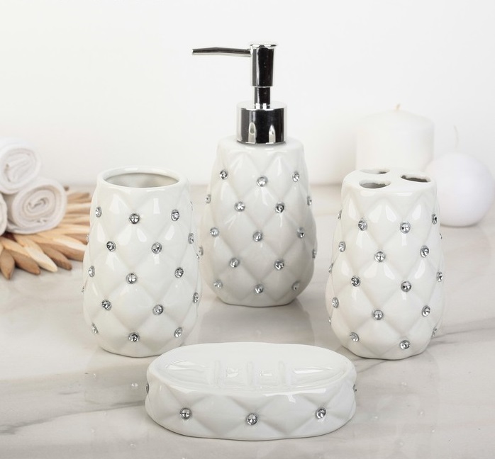 НАБОР АКСЕССУАРОВ ДЛЯ ВАННОЙ КОМНАТЫ 4 ПРЕДМЕТА "СКАНДИНАВСКИЙ" ЦВЕТ БЕЛЫЙ